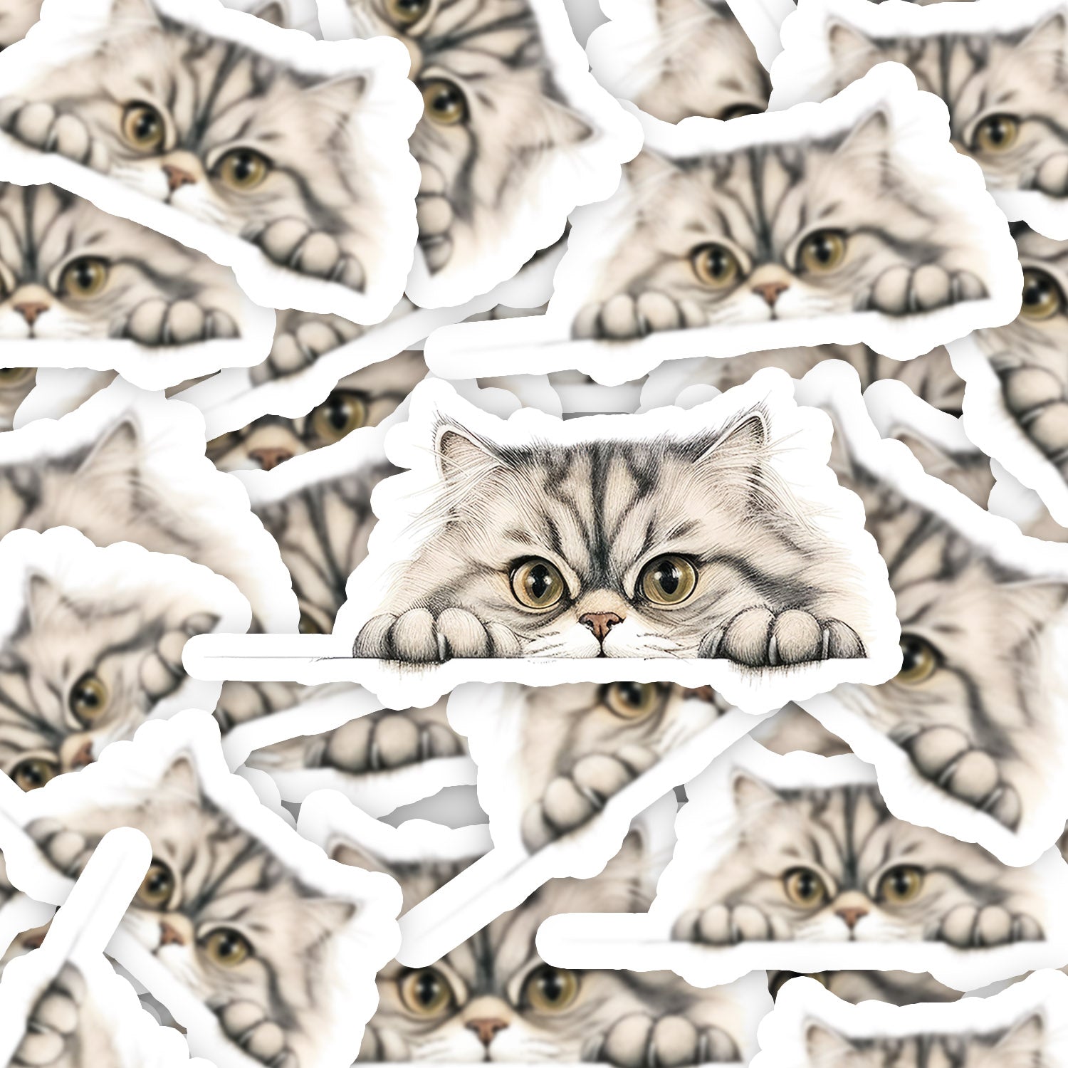 Set 5 bucati, Sticker decorativ, Pisica Persana suparata, Rezistent la apa, NO16336, 6 cm, Multicolor