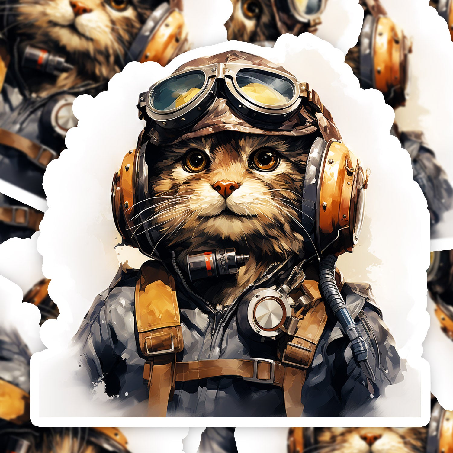 Set 5 bucati, Sticker decorativ, Pisica pilot, Rezistent la apa, NO16406, 6 cm, Multicolor