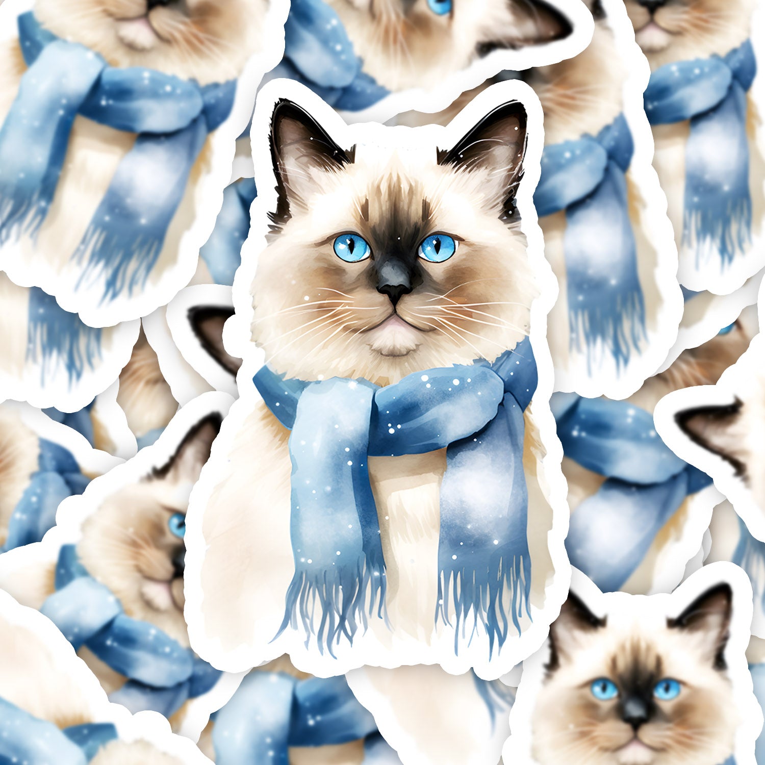 Set 5 bucati, Sticker decorativ, Pisica Ragdoll, Rezistent la apa, NO14200, 6 cm, Multicolor