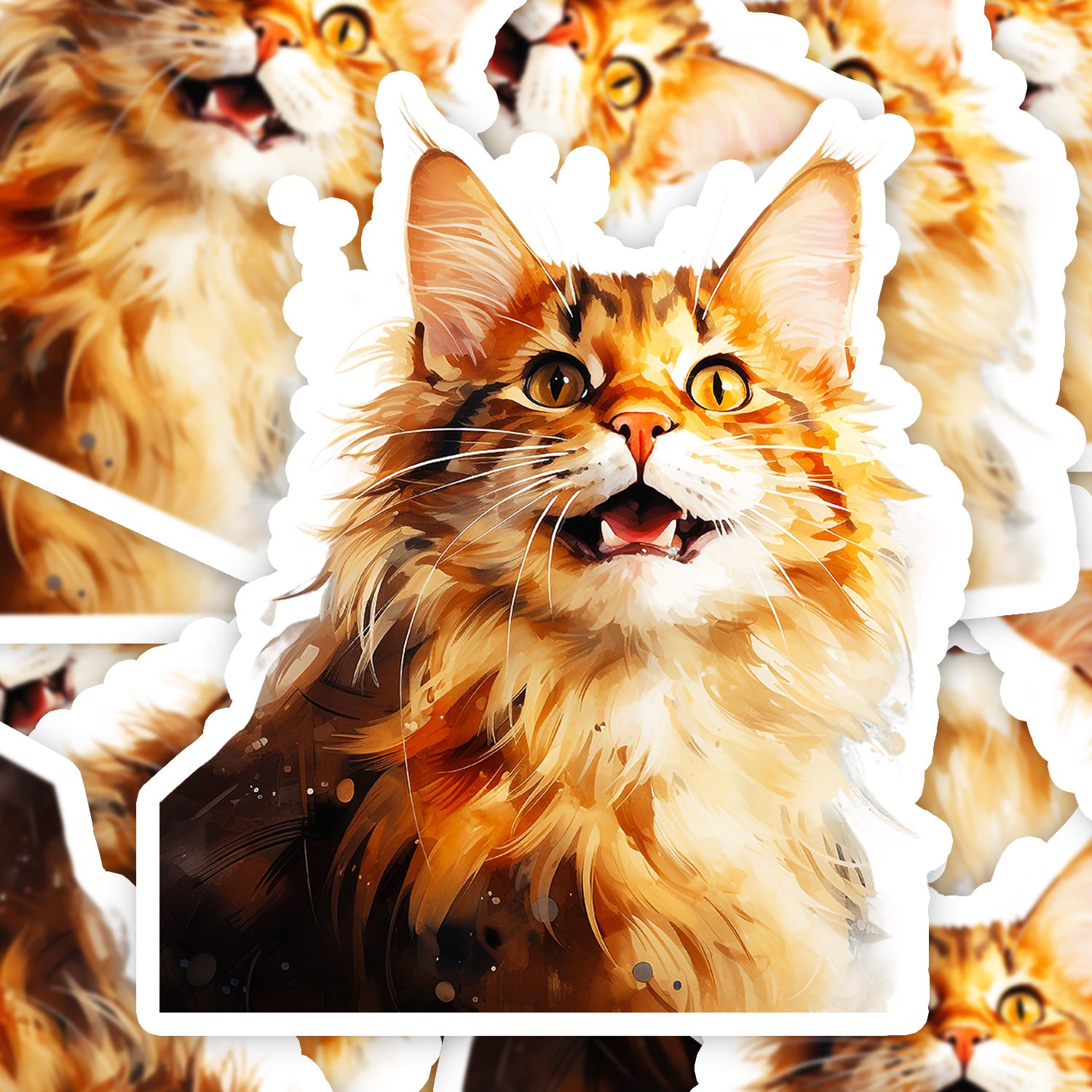 Set 5 bucati, Sticker decorativ, Pisica rasfatata, Rezistent la apa, NO15410, 6 cm, Multicolor