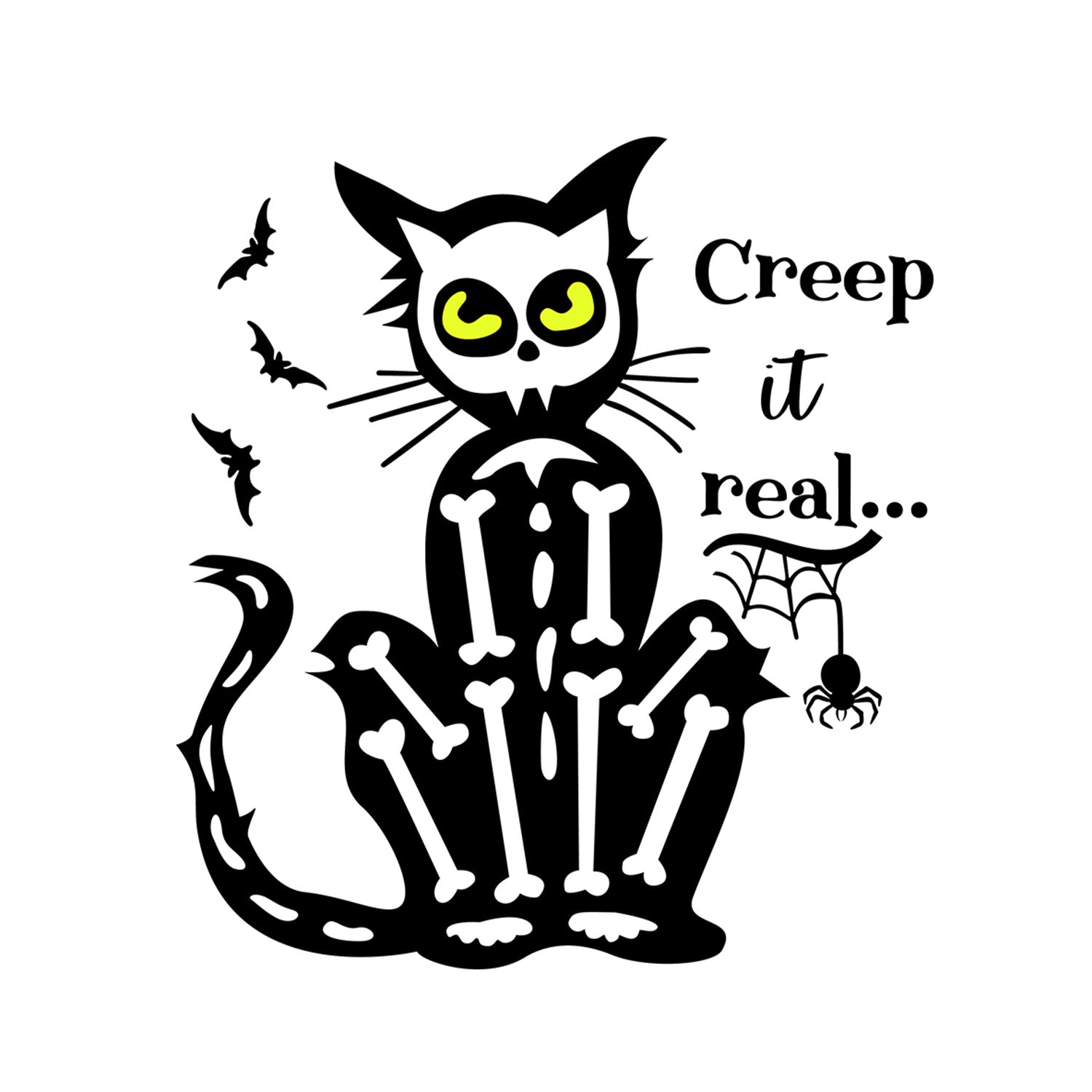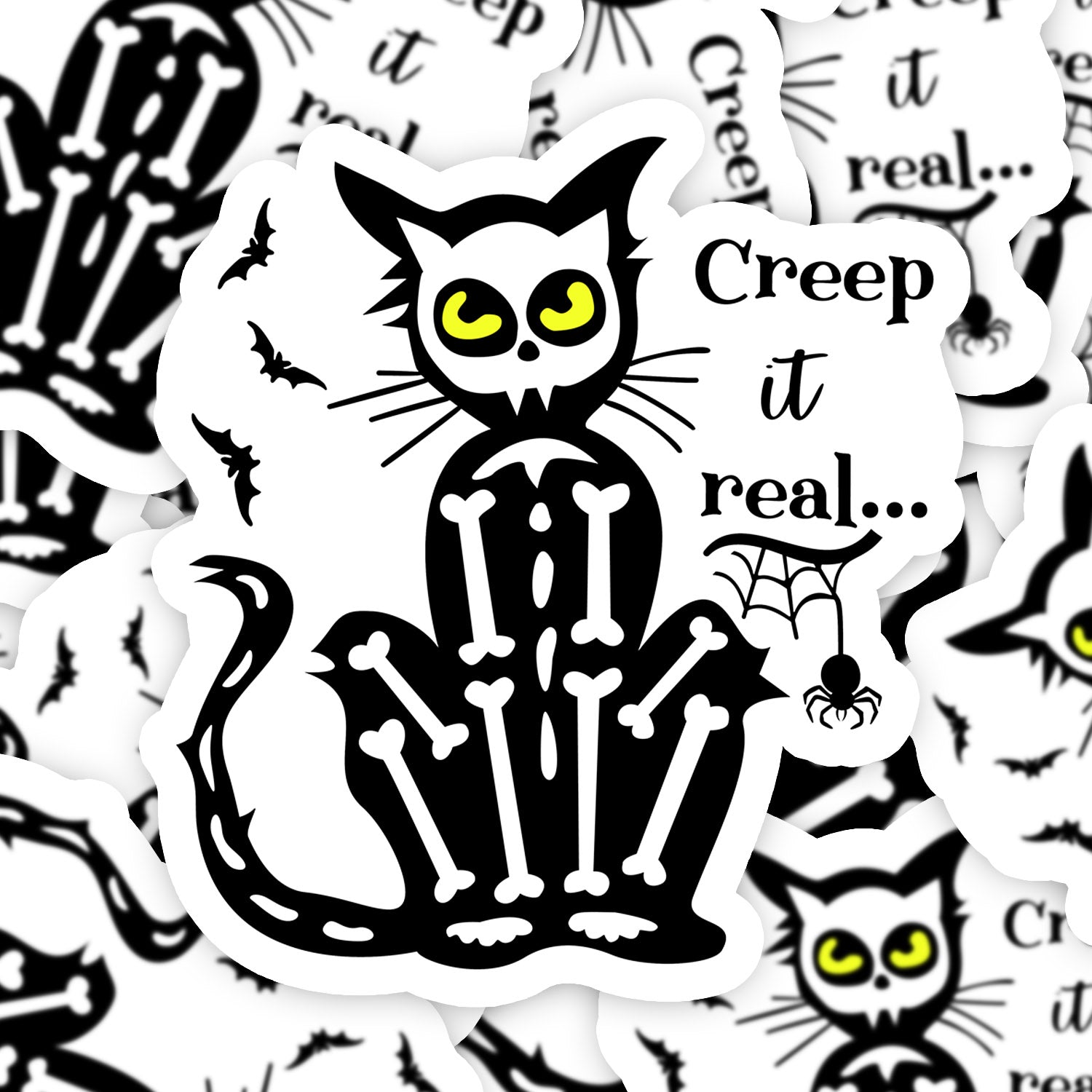 Set 5 bucati, Sticker decorativ, Pisica schelet Creep t real, Rezistent la apa, NO12416, 6 cm, Multicolor