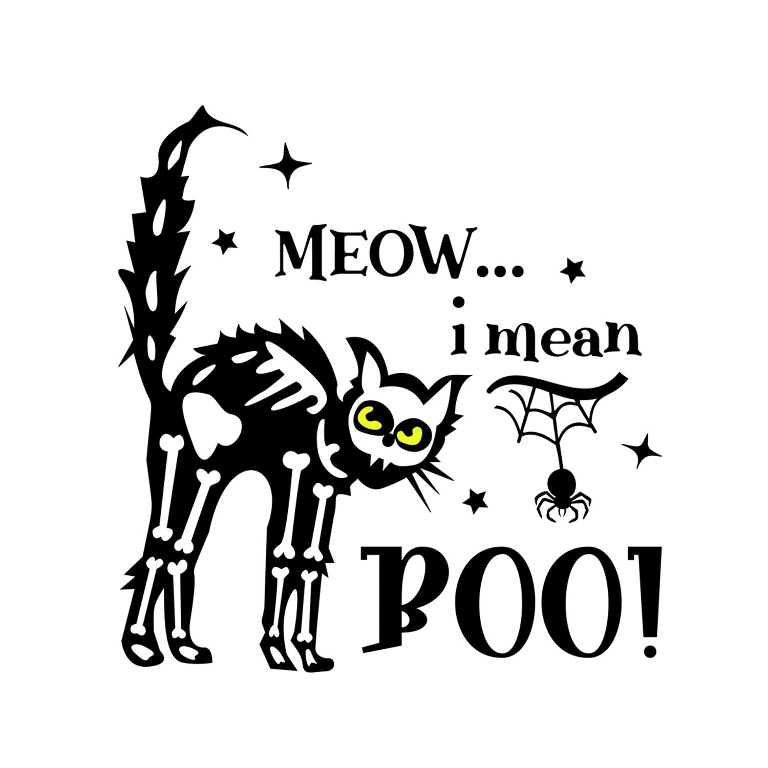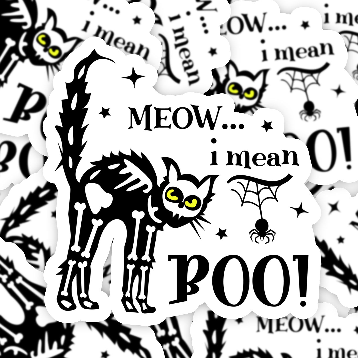 Set 5 bucati, Sticker decorativ, Pisica schelet Meow i mean Boo, Rezistent la apa, NO14968, 6 cm, Multicolor