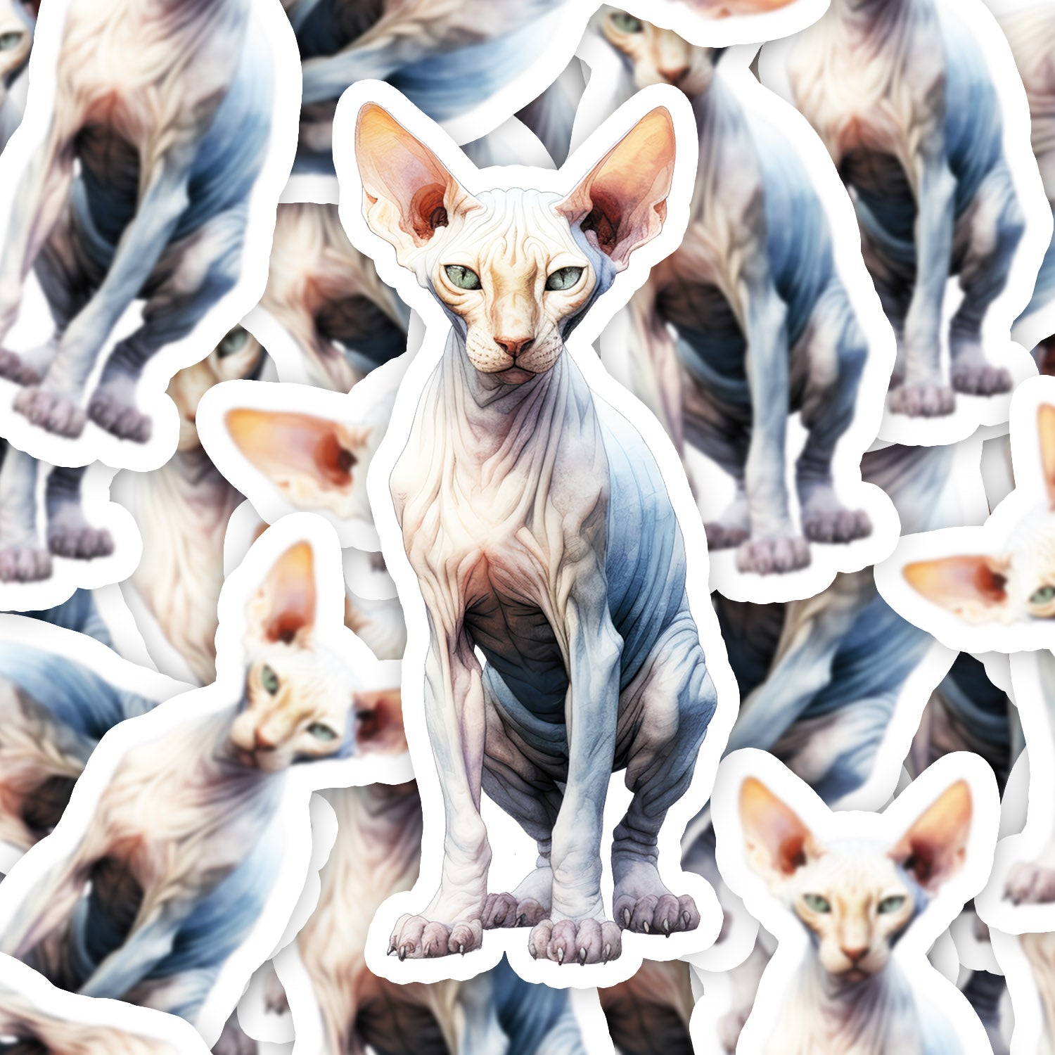 Set 5 bucati, Sticker decorativ, Pisica sfinx, Rezistent la apa, NO16439, 6 cm, Multicolor