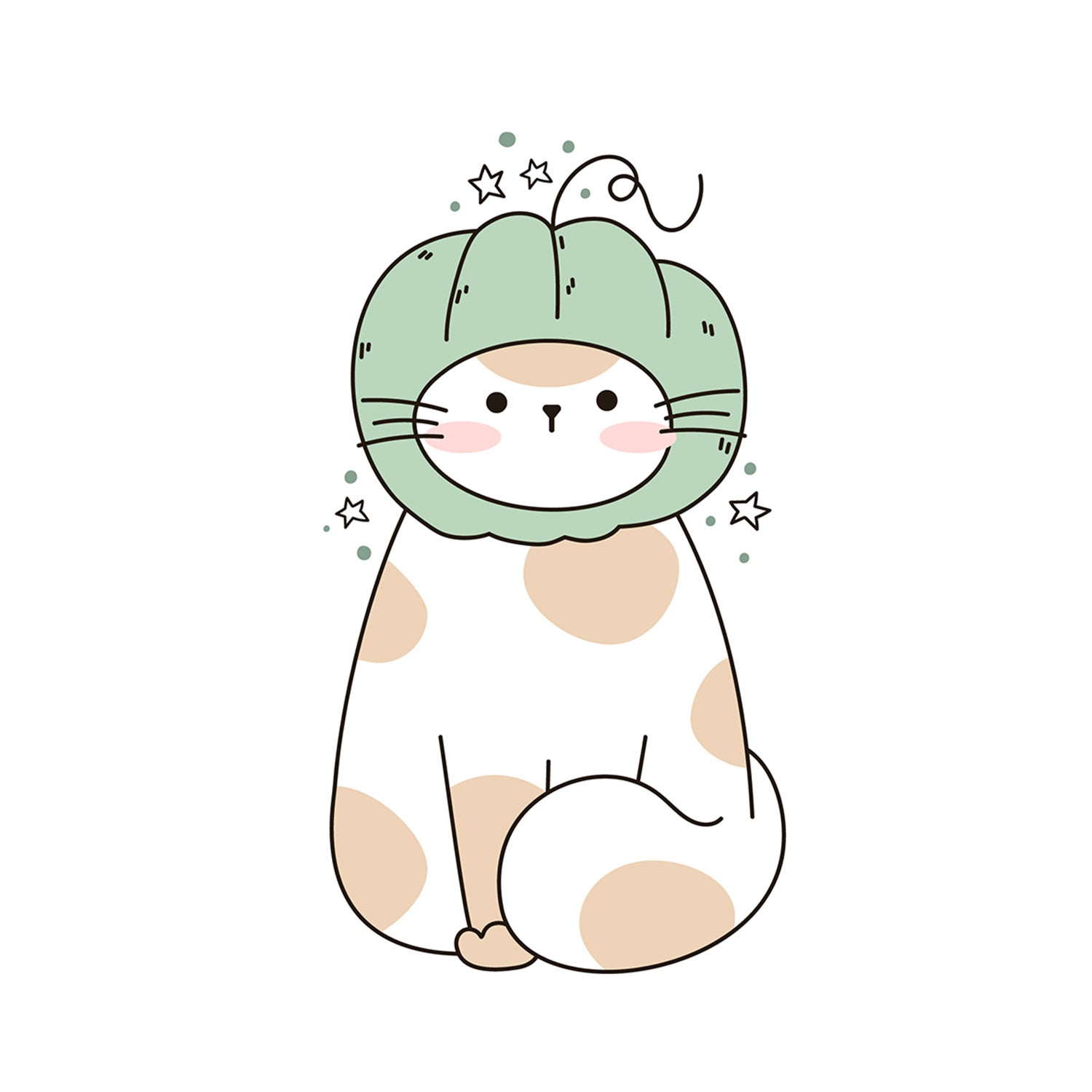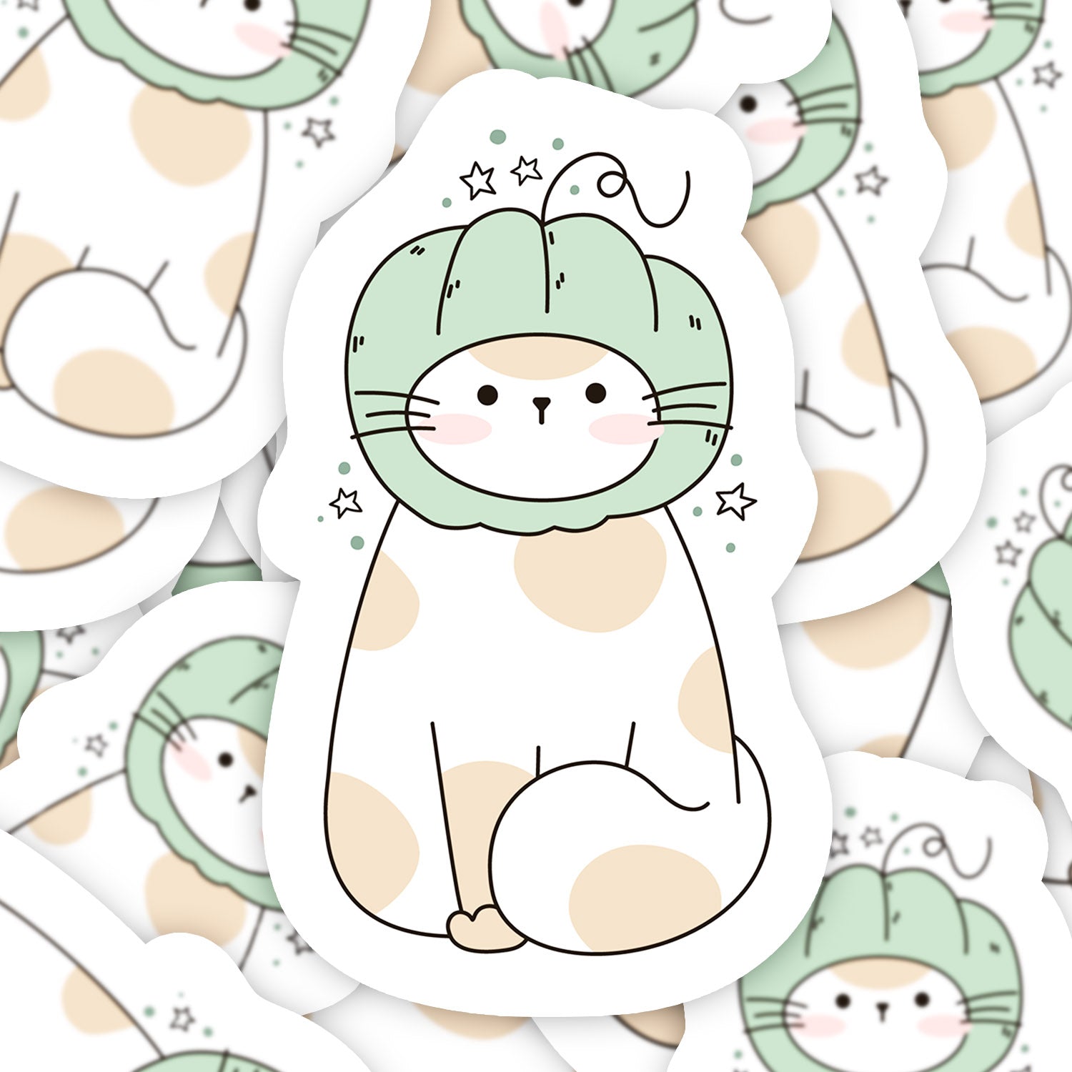 Set 5 bucati, Sticker decorativ, Pisica simpatica cu caciula verde, Rezistent la apa, NO15667, 6 cm, Multicolor