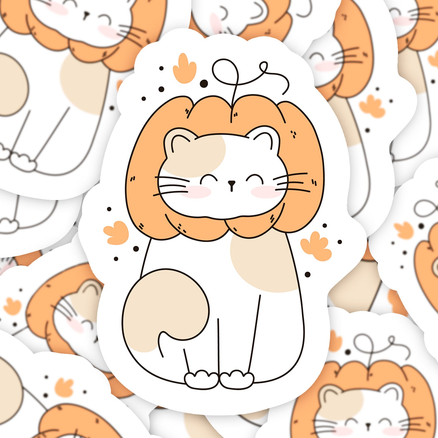 Set 5 bucati, Sticker decorativ, Pisica simpatica cu ochii inchisi, Rezistent la apa, NO12004, 6 cm, Multicolor
