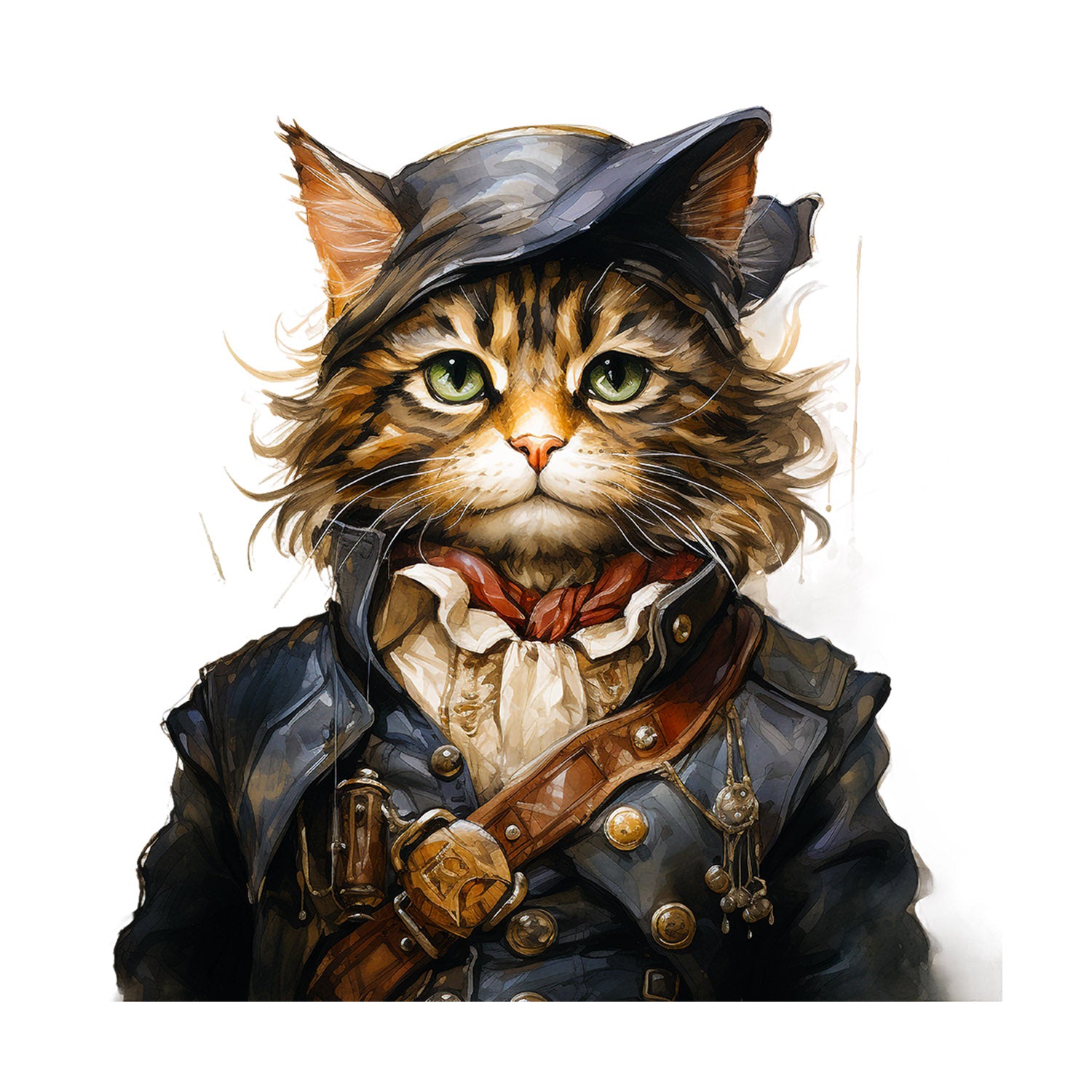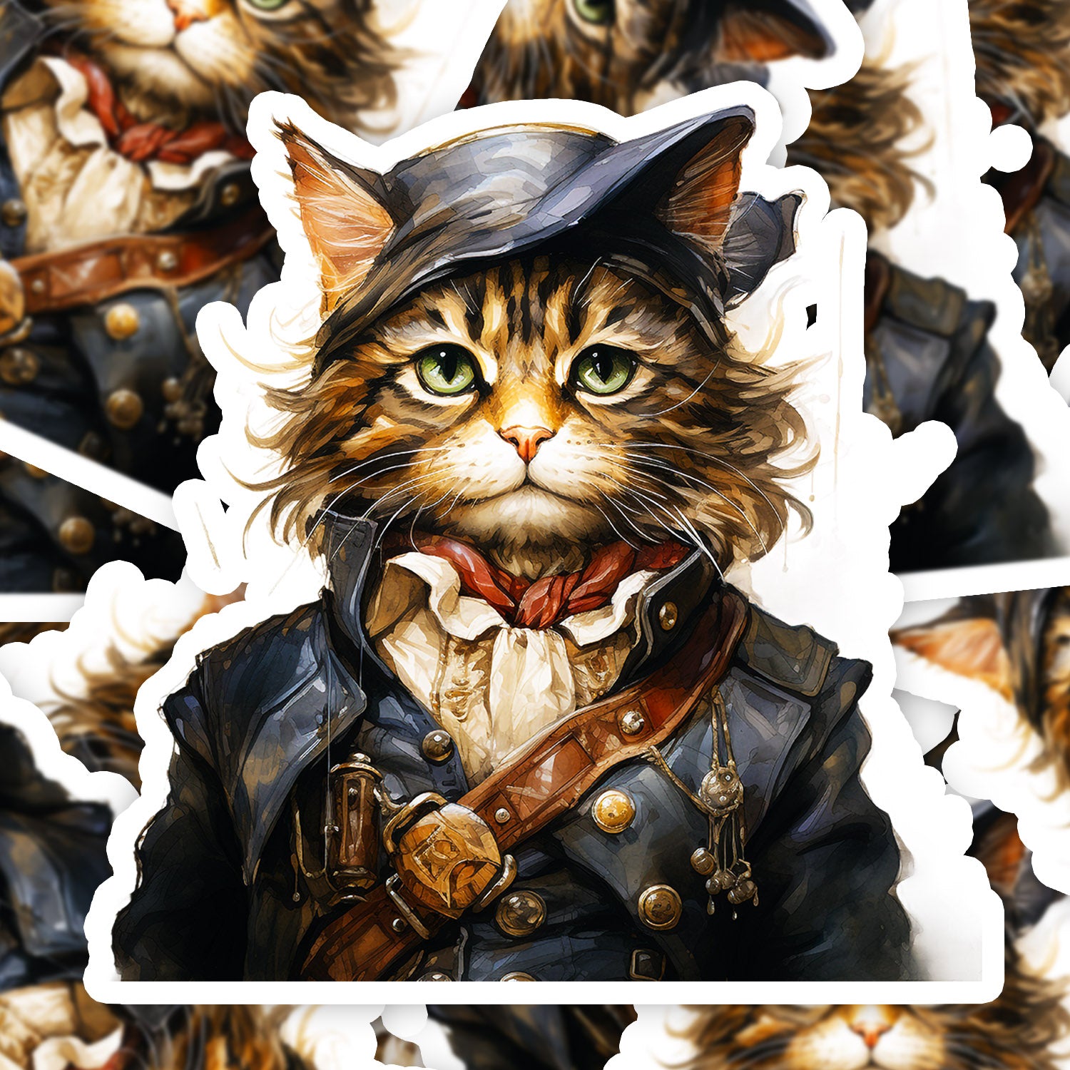 Set 5 bucati, Sticker decorativ, Pisica soldat, Rezistent la apa, NO15161, 6 cm, Multicolor