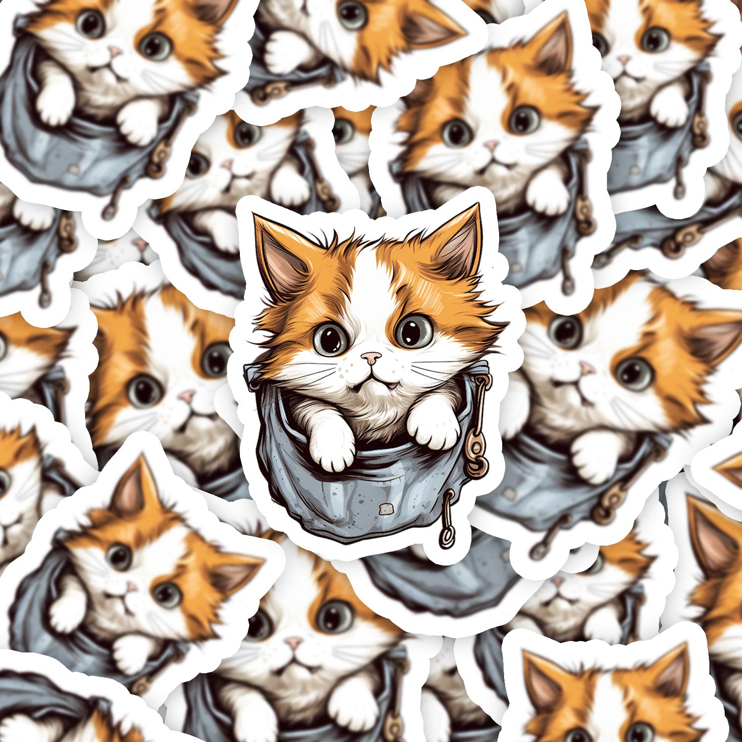 Set 5 bucati, Sticker decorativ, Pisica Sophie, Rezistent la apa, NO13400, 6 cm, Multicolor