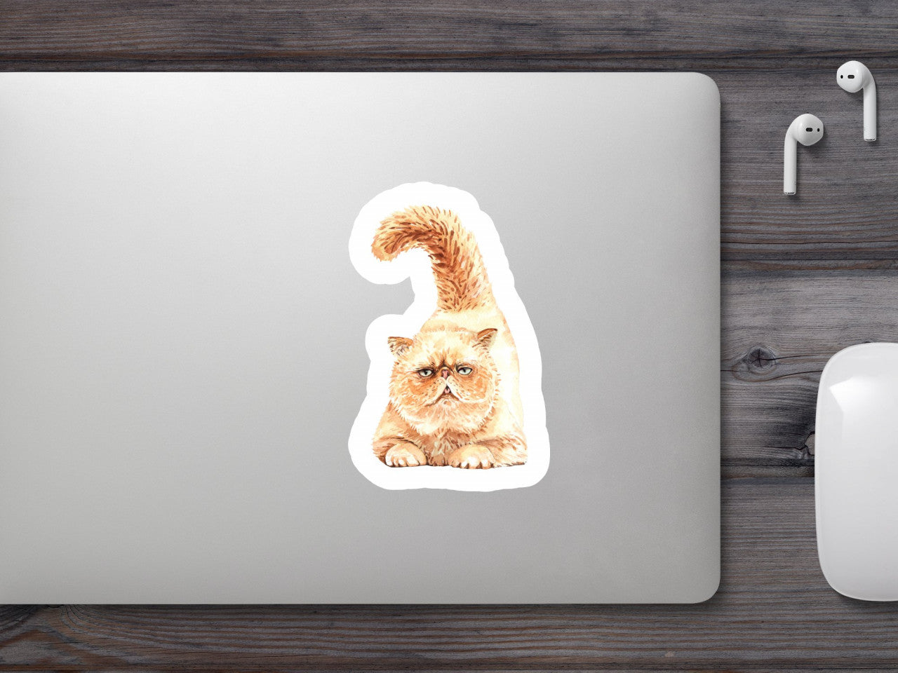 Set 5 bucati, Sticker decorativ, Pisica stufoasa cu coada in sus, Rezistent la apa, NO10255, 6 cm, Multicolor