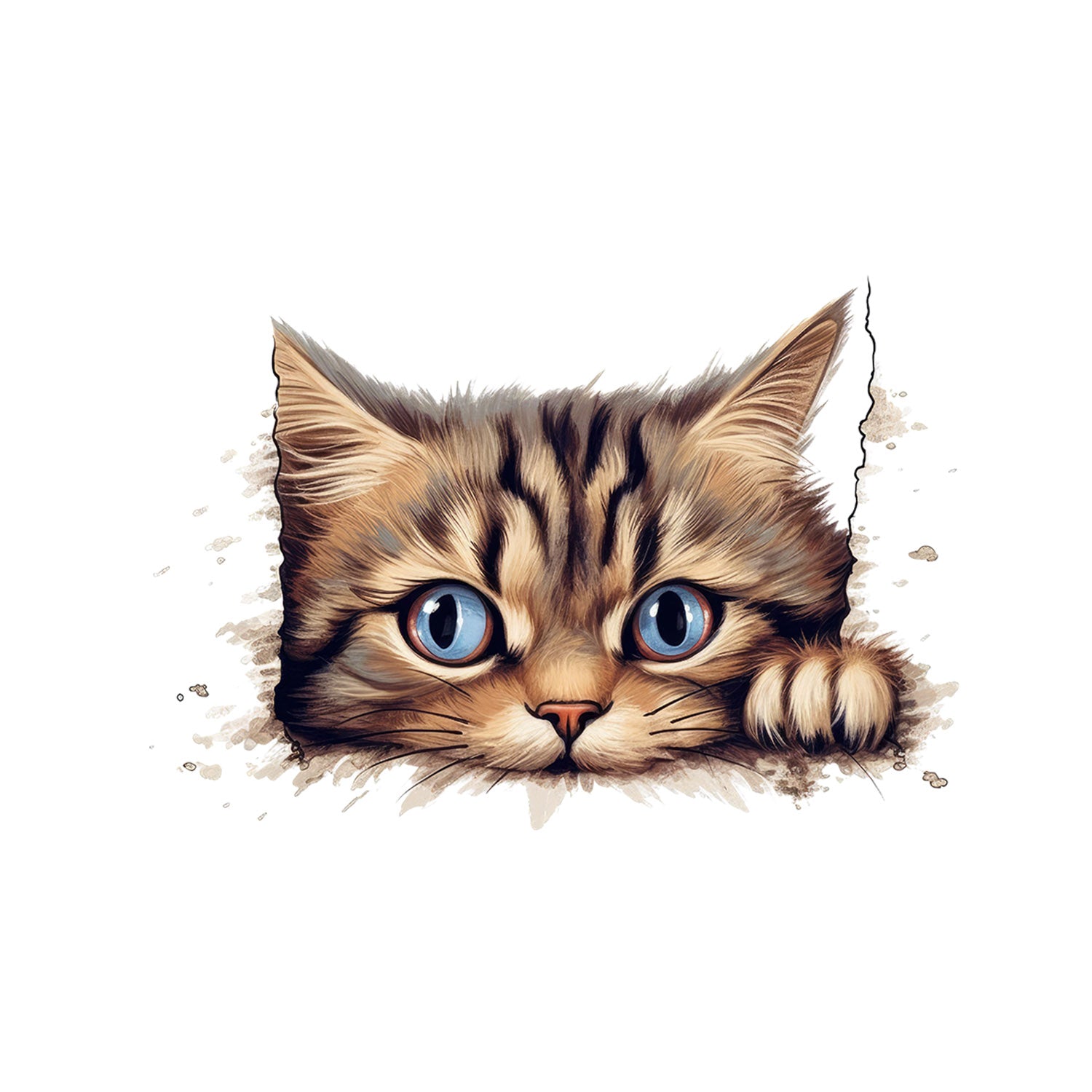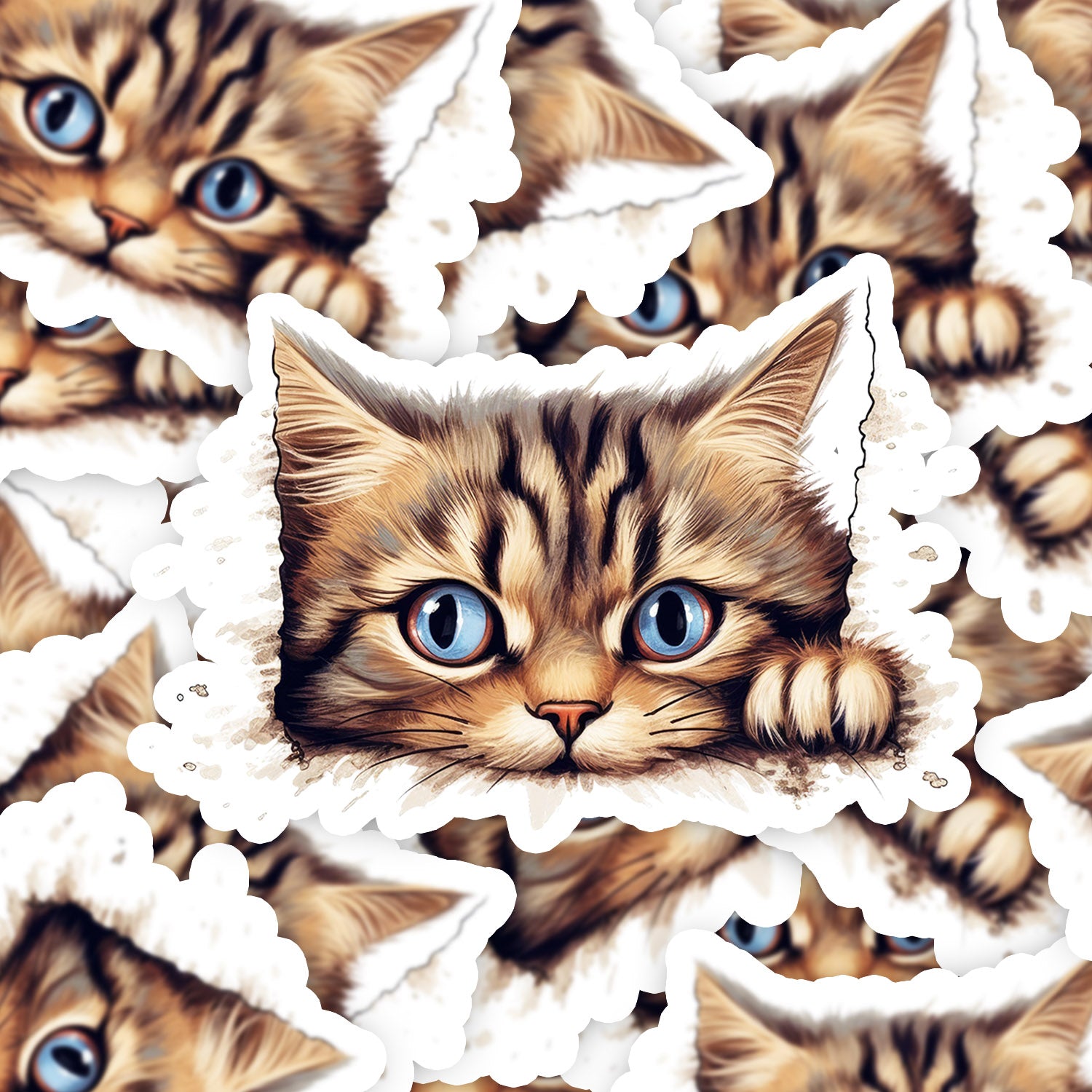 Set 5 bucati, Sticker decorativ, Pisica tigrata cu ochi albastri, Rezistent la apa, NO12244, 6 cm, Multicolor