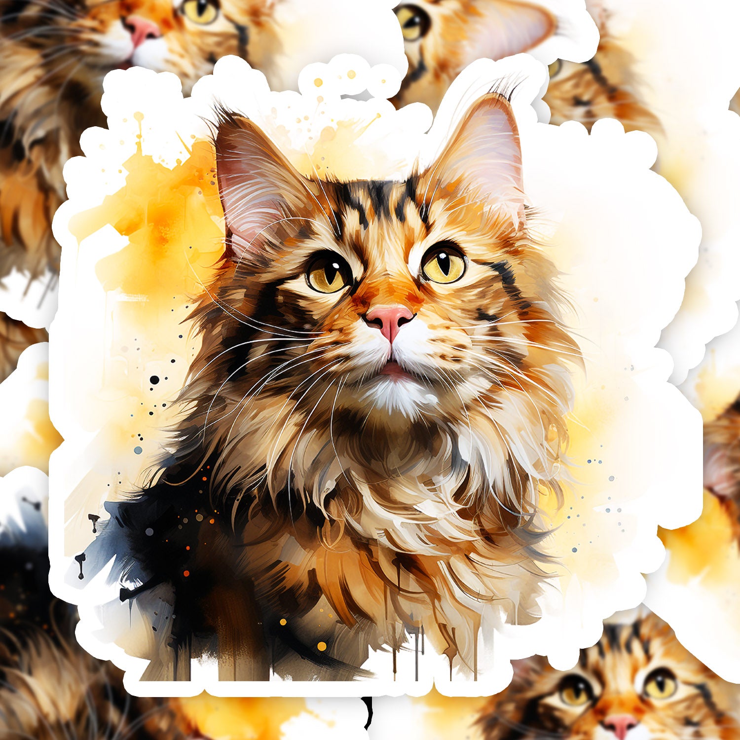 Set 5 bucati, Sticker decorativ, Pisica trista, Rezistent la apa, NO15581, 6 cm, Multicolor