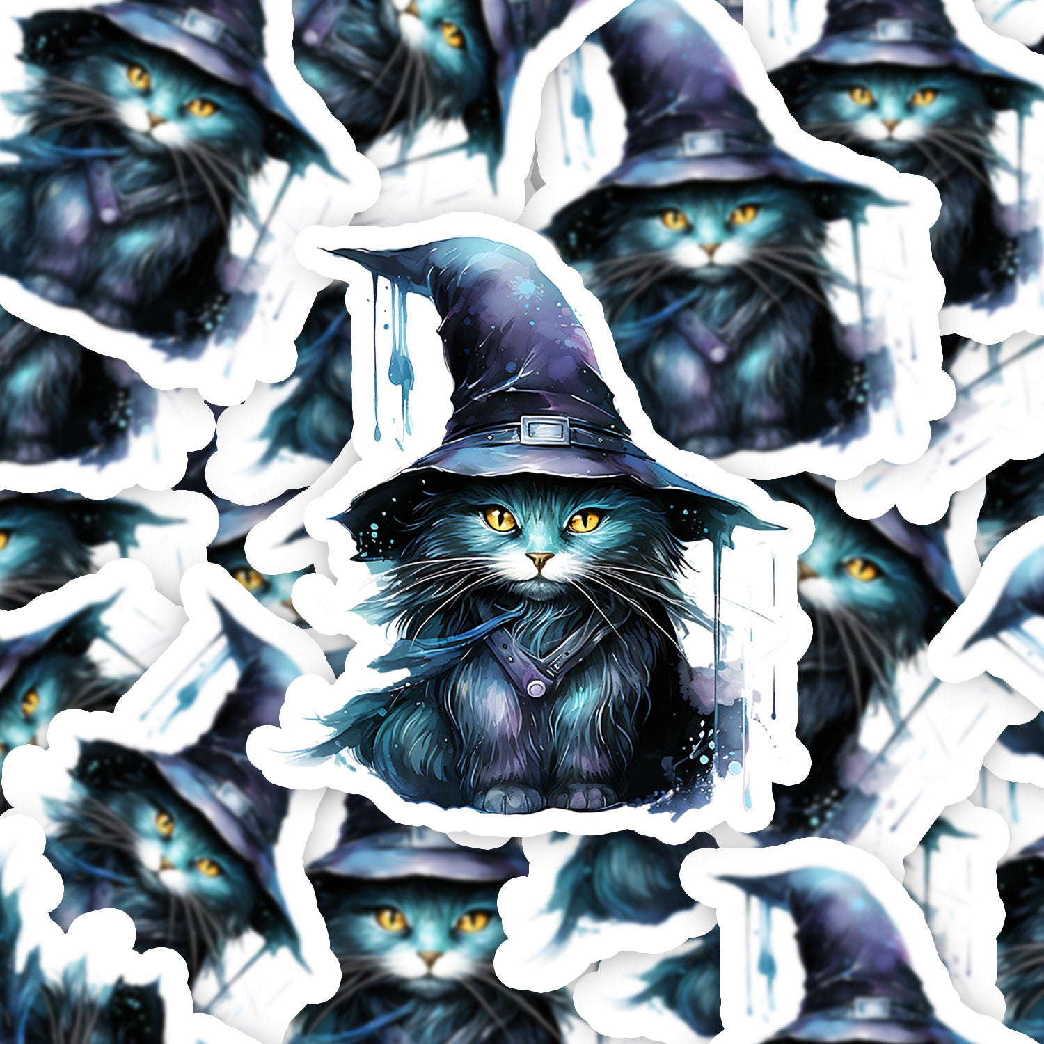 Set 5 bucati, Sticker decorativ, Pisica vrajitoare, Rezistent la apa, NO11520, 6 cm, Multicolor