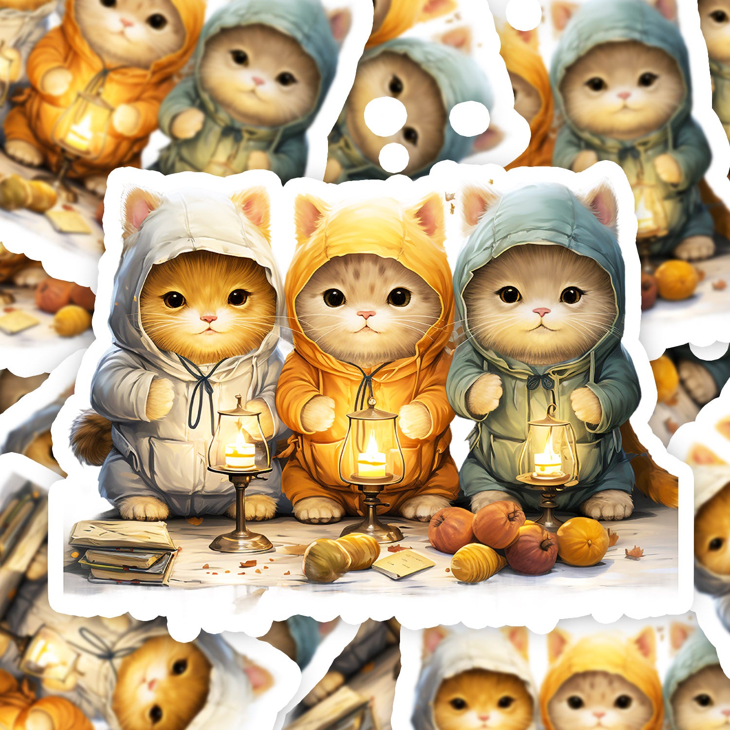 Set 5 bucati, Sticker decorativ, Pisicile Jax, Rezistent la apa, NO13440, 6 cm, Multicolor