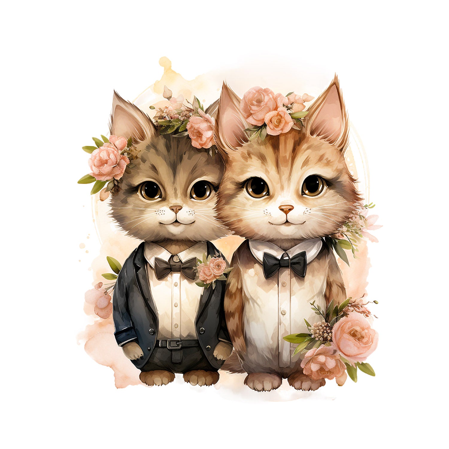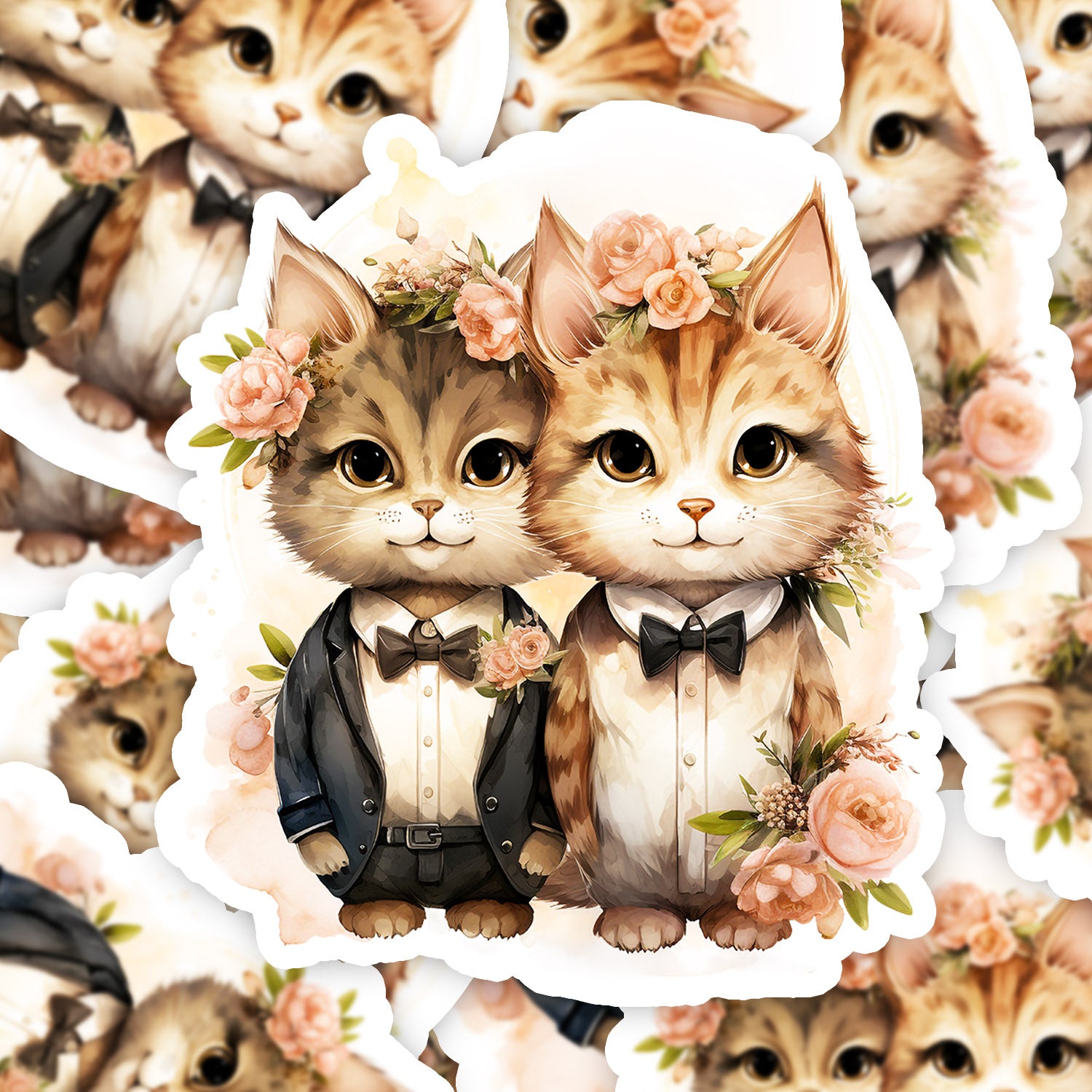 Set 5 bucati, Sticker decorativ, Pisicile mire si mireasa, Rezistent la apa, NO16020, 6 cm, Multicolor