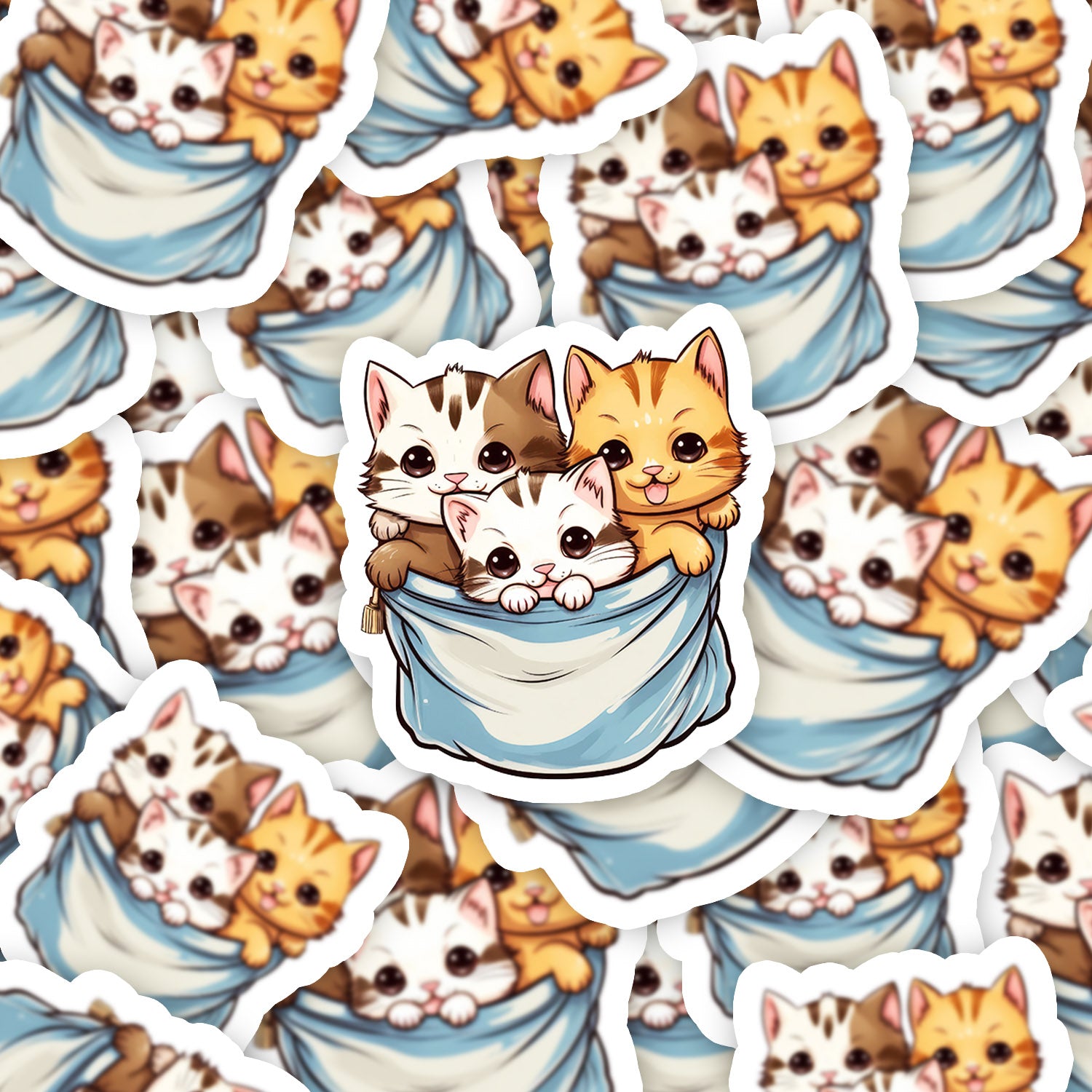 Set 5 bucati, Sticker decorativ, Pisicutele Willow, Rezistent la apa, NO11279, 6 cm, Multicolor