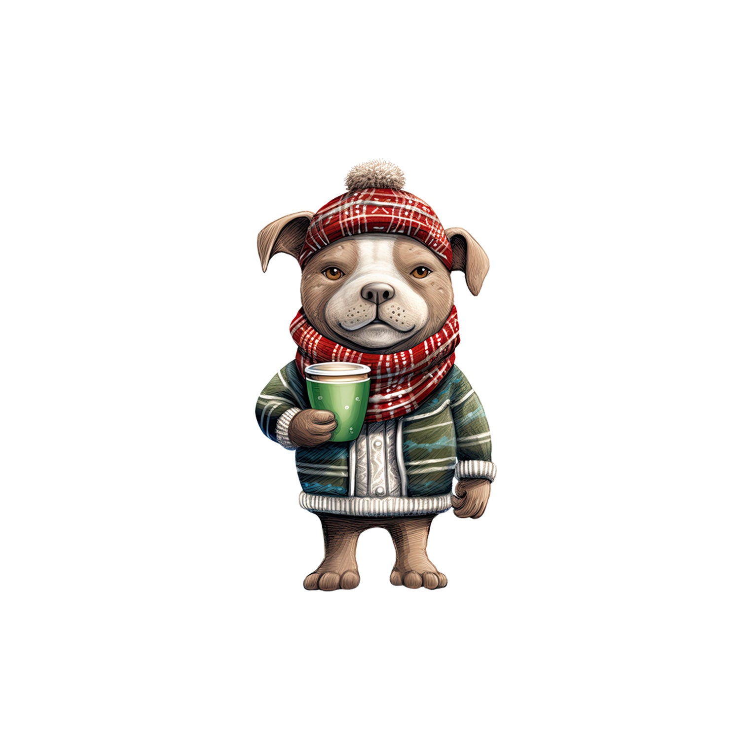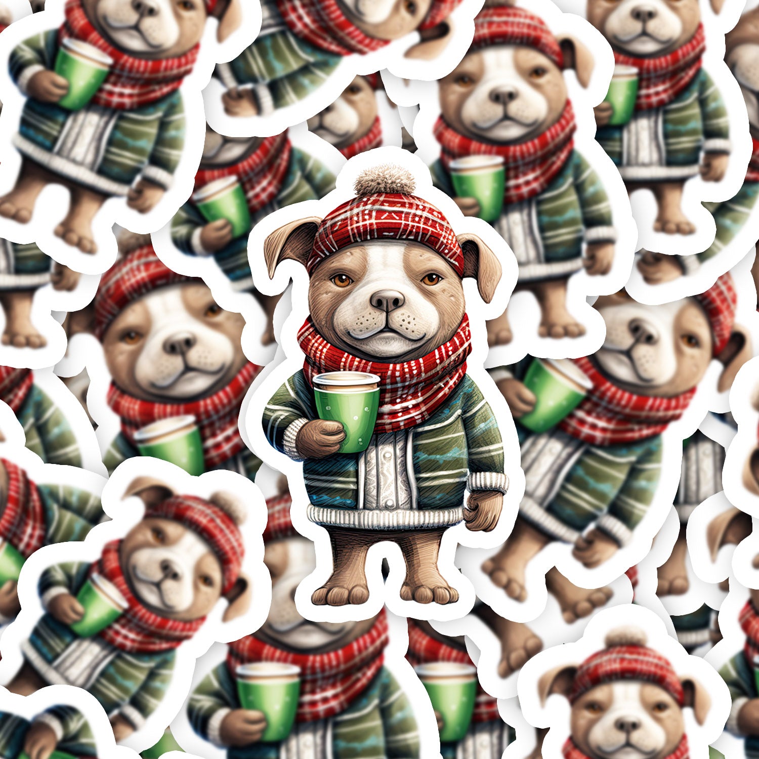 Set 5 bucati, Sticker decorativ, Pitbull bea cafea, Rezistent la apa, NO13189, 6 cm, Multicolor