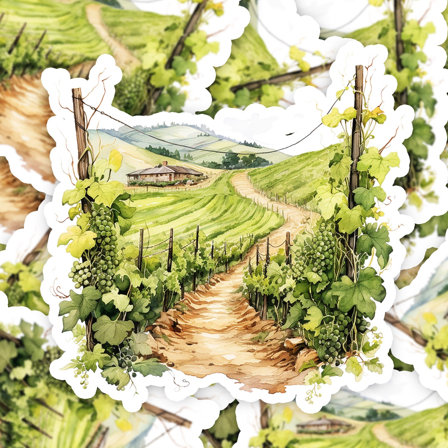 Set 5 bucati, Sticker decorativ, Plantatie vita de vie Bianco, Rezistent la apa, NO15109, 6 cm, Multicolor