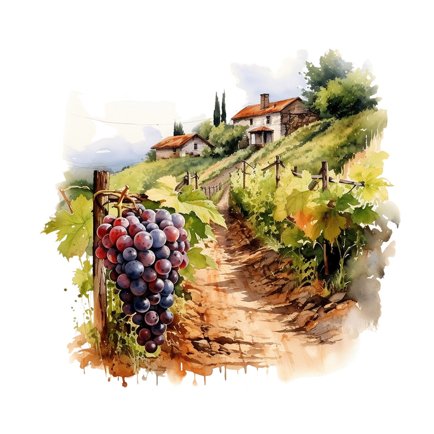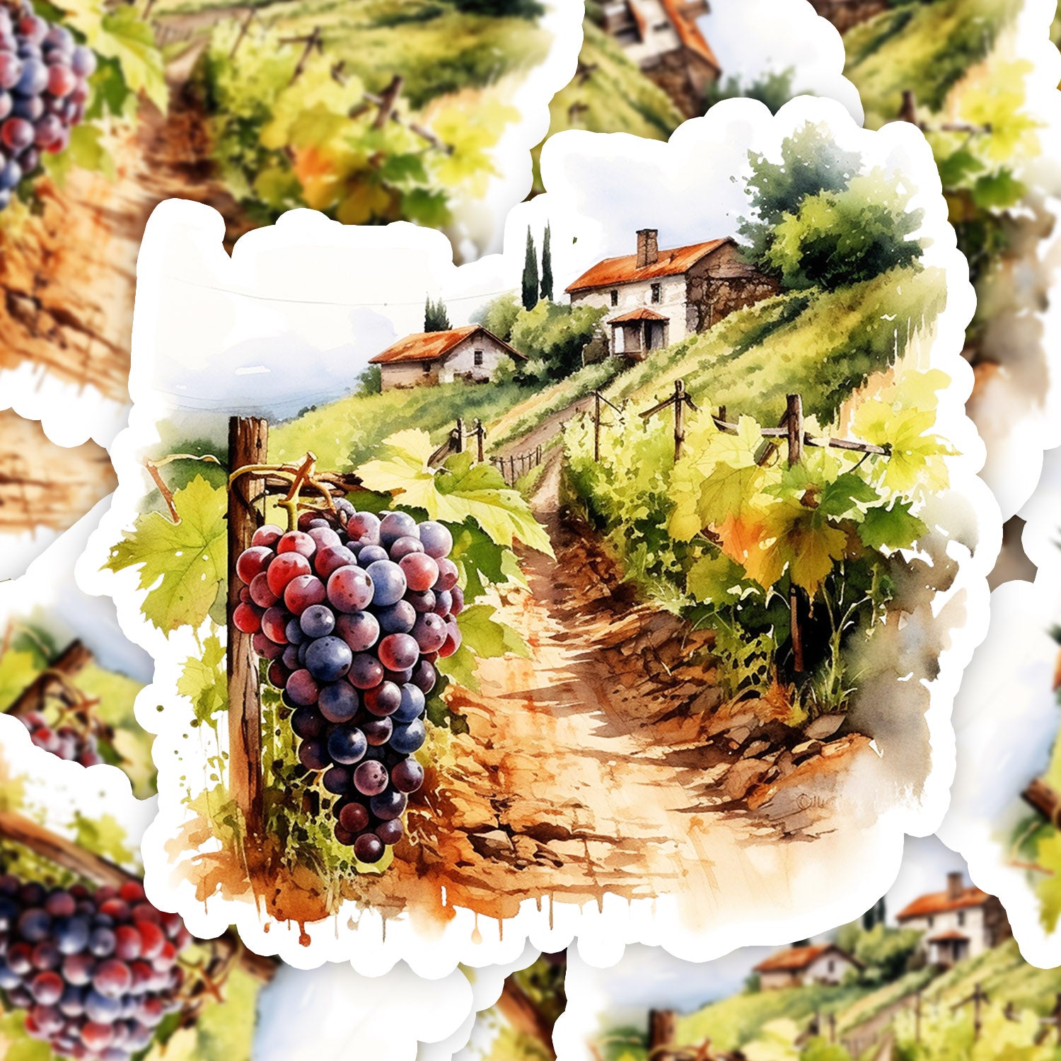 Set 5 bucati, Sticker decorativ, Plantatie vita de vie Grape, Rezistent la apa, NO13525, 6 cm, Multicolor