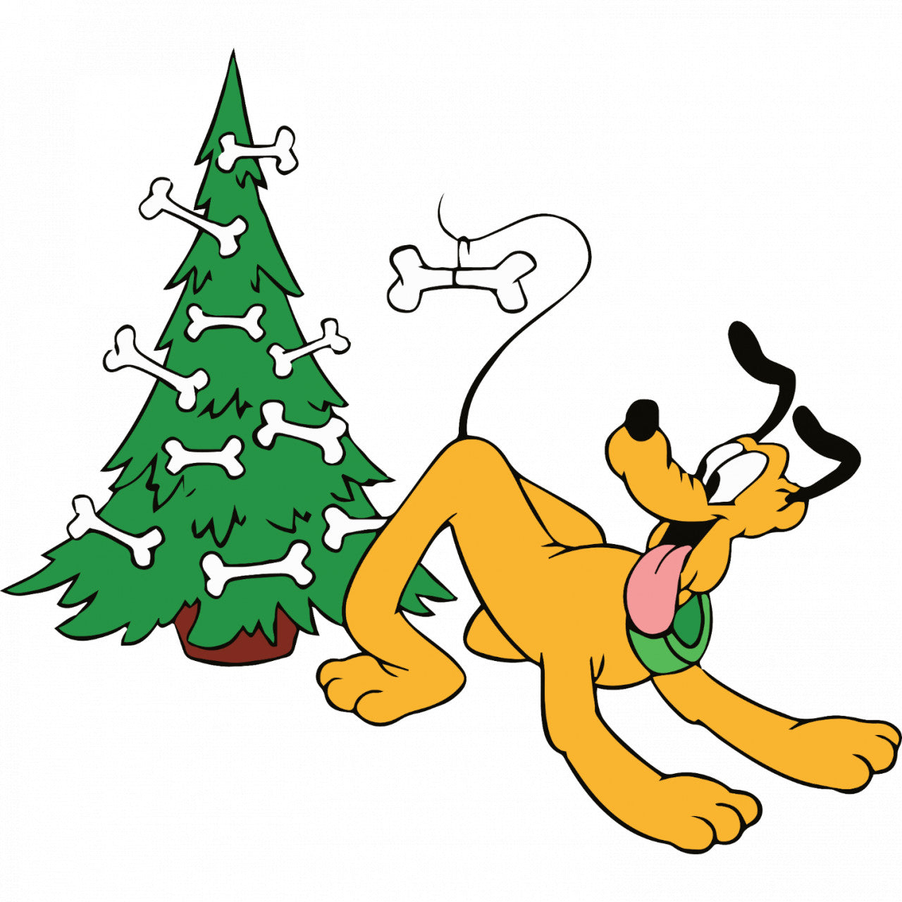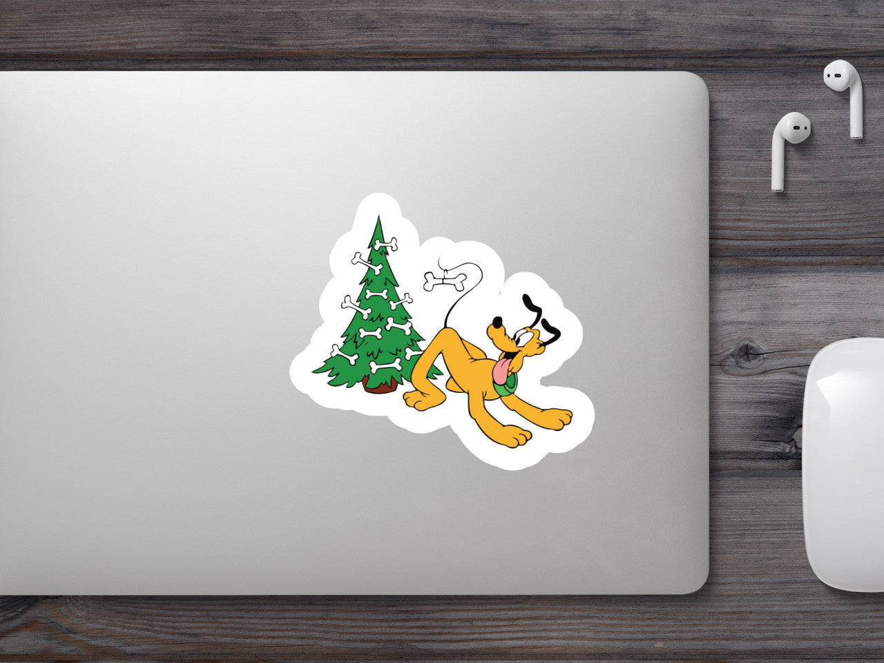 Set 5 bucati, Sticker decorativ, Pluto si pomul de craciun cu oase in el, Rezistent la apa, NO7536, 6 cm, Multicolor