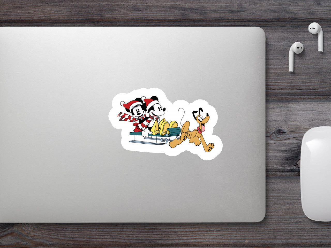 Set 5 bucati, Sticker decorativ, Pluto trage sania de craciun, Rezistent la apa, NO7538, 6 cm, Multicolor