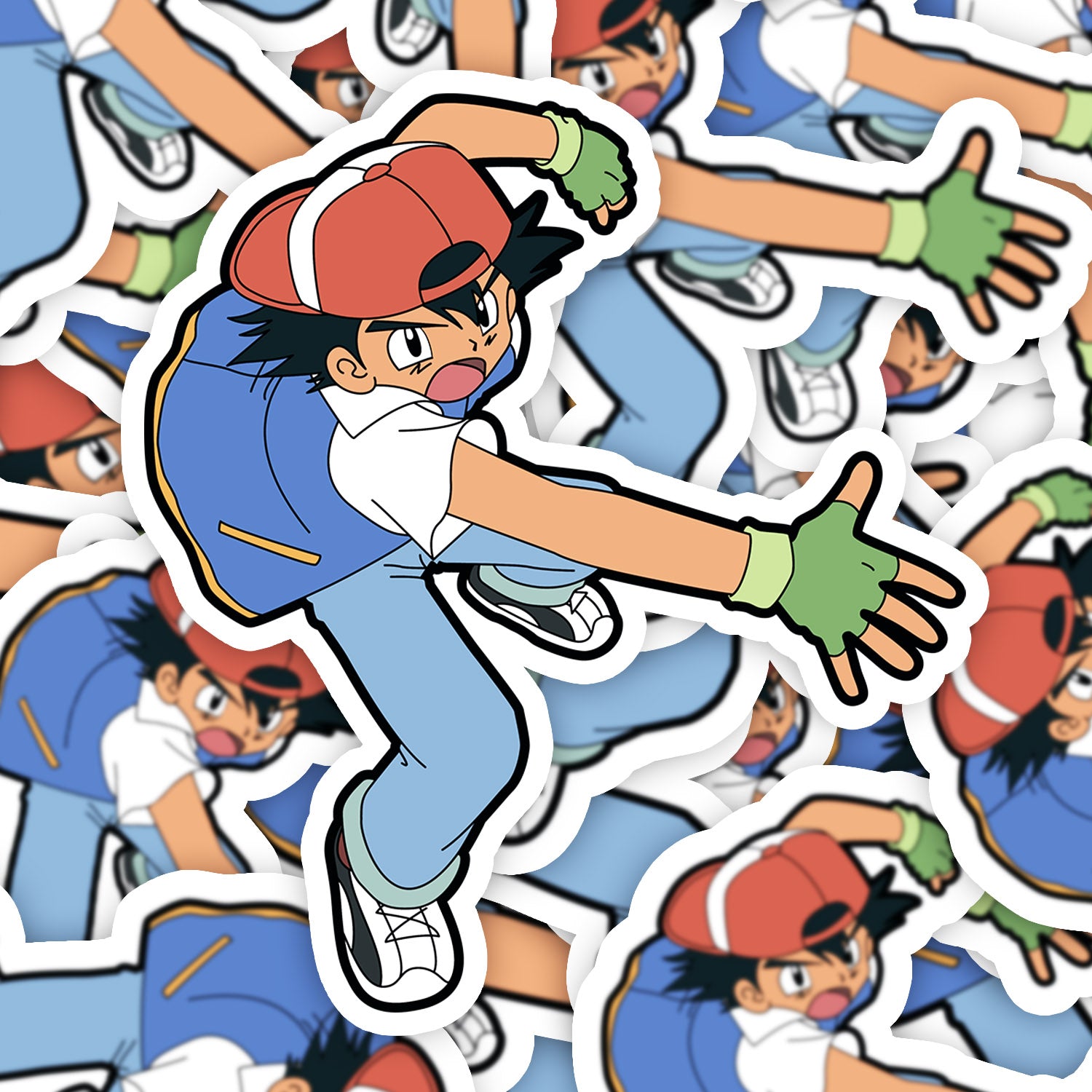 Set 5 bucati, Sticker decorativ, Pokemon Ash Ketchum in lupta, Rezistent la apa, NO14500, 6 cm, Multicolor