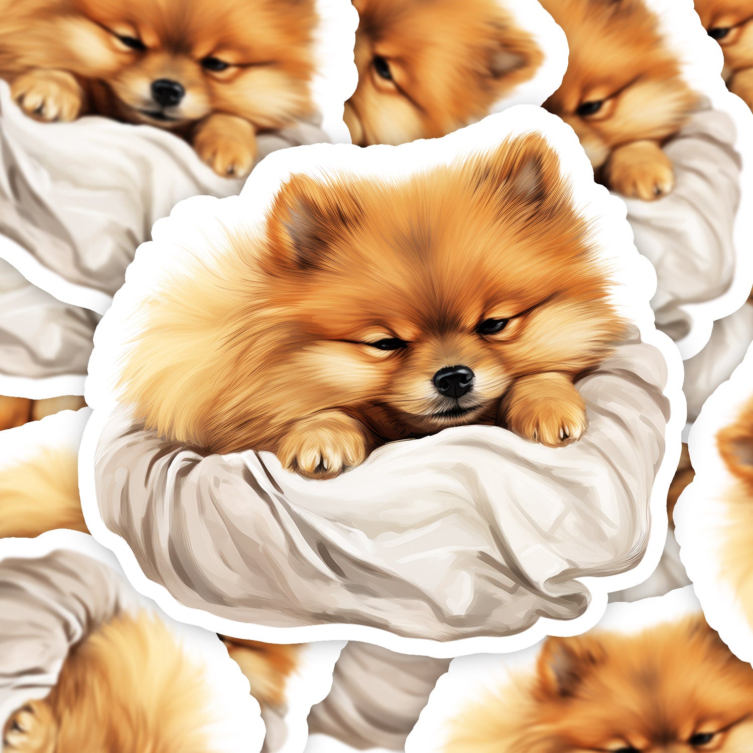 Set 5 bucati, Sticker decorativ, Pomeranian, Rezistent la apa, NO15461, 6 cm, Multicolor