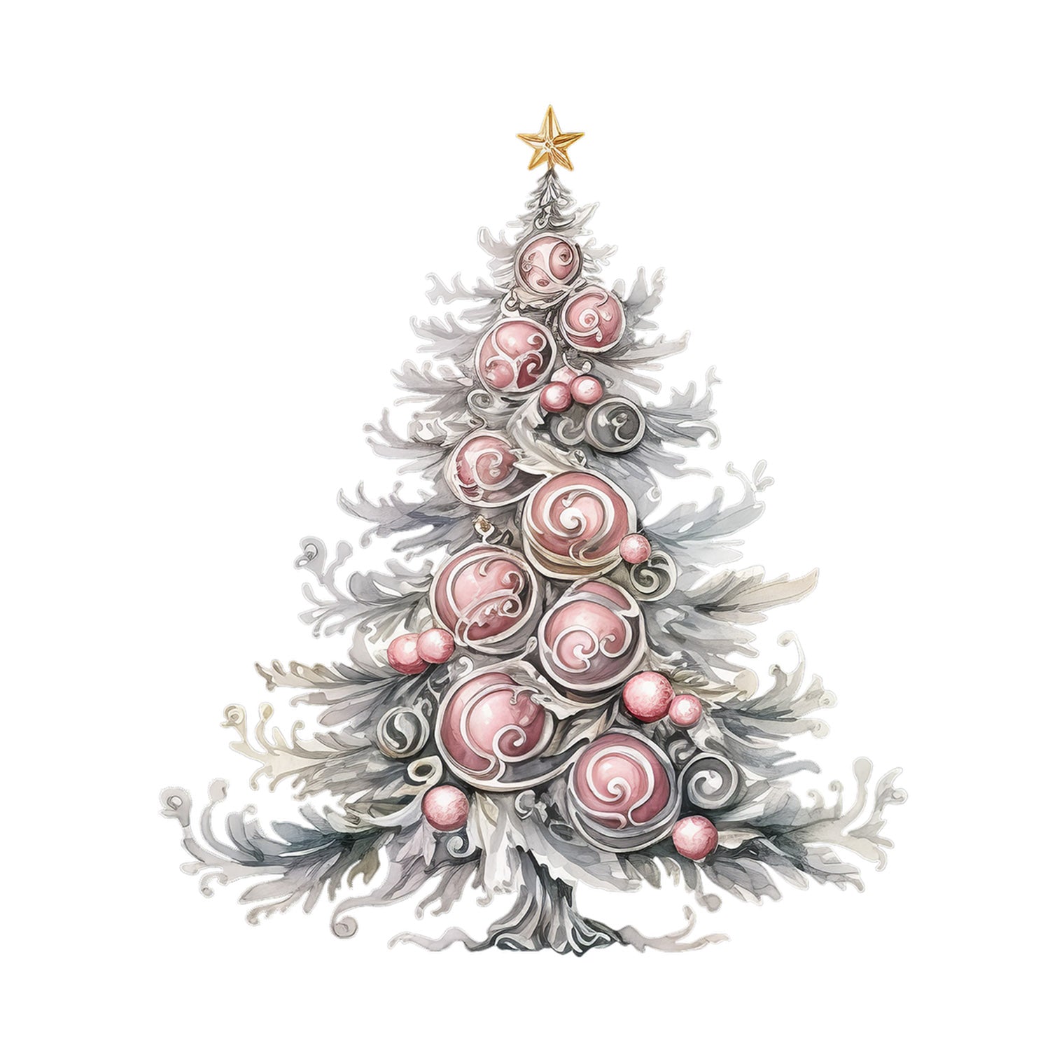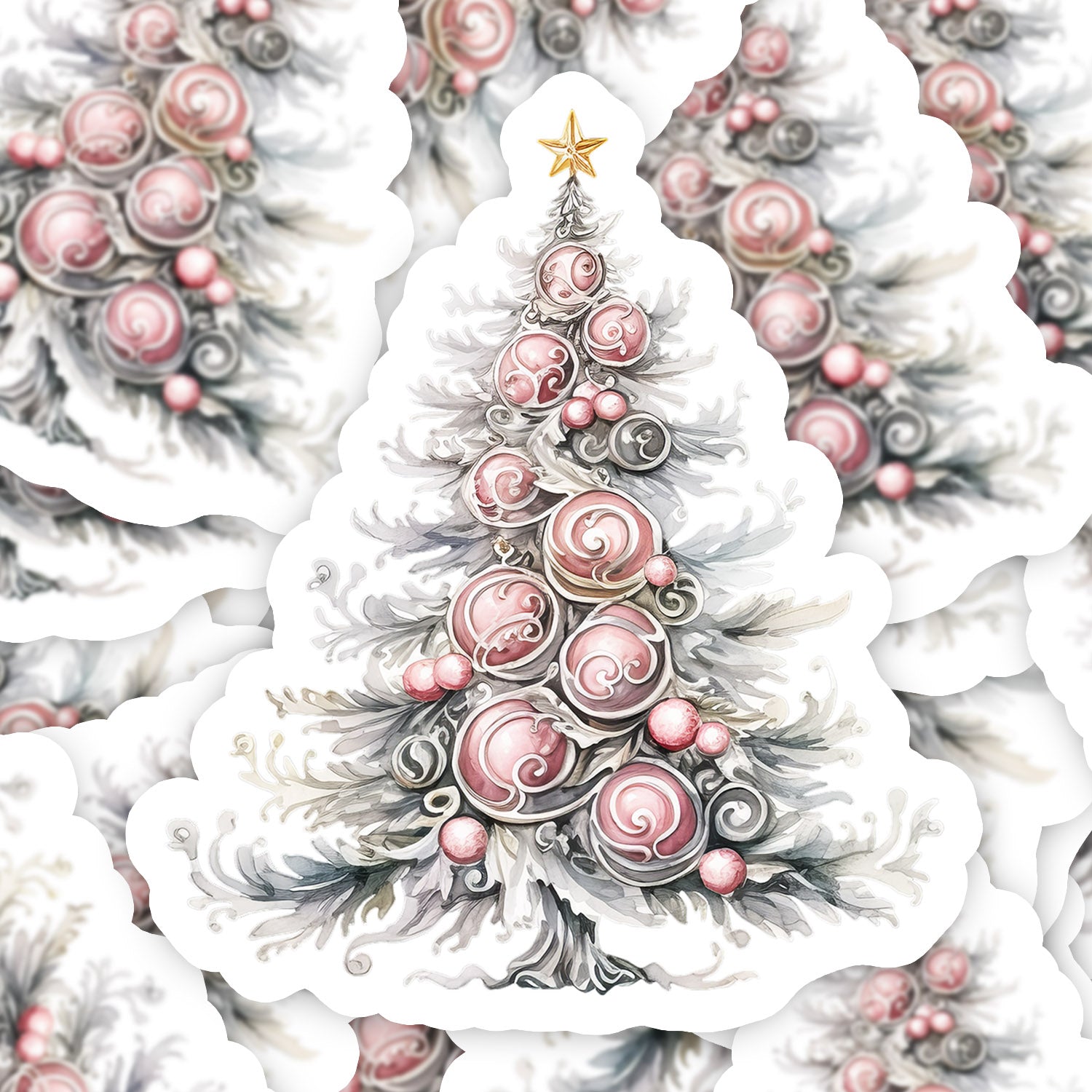 Set 5 bucati, Sticker decorativ, Pomul de craciun argintiu, Rezistent la apa, NO11917, 6 cm, Multicolor
