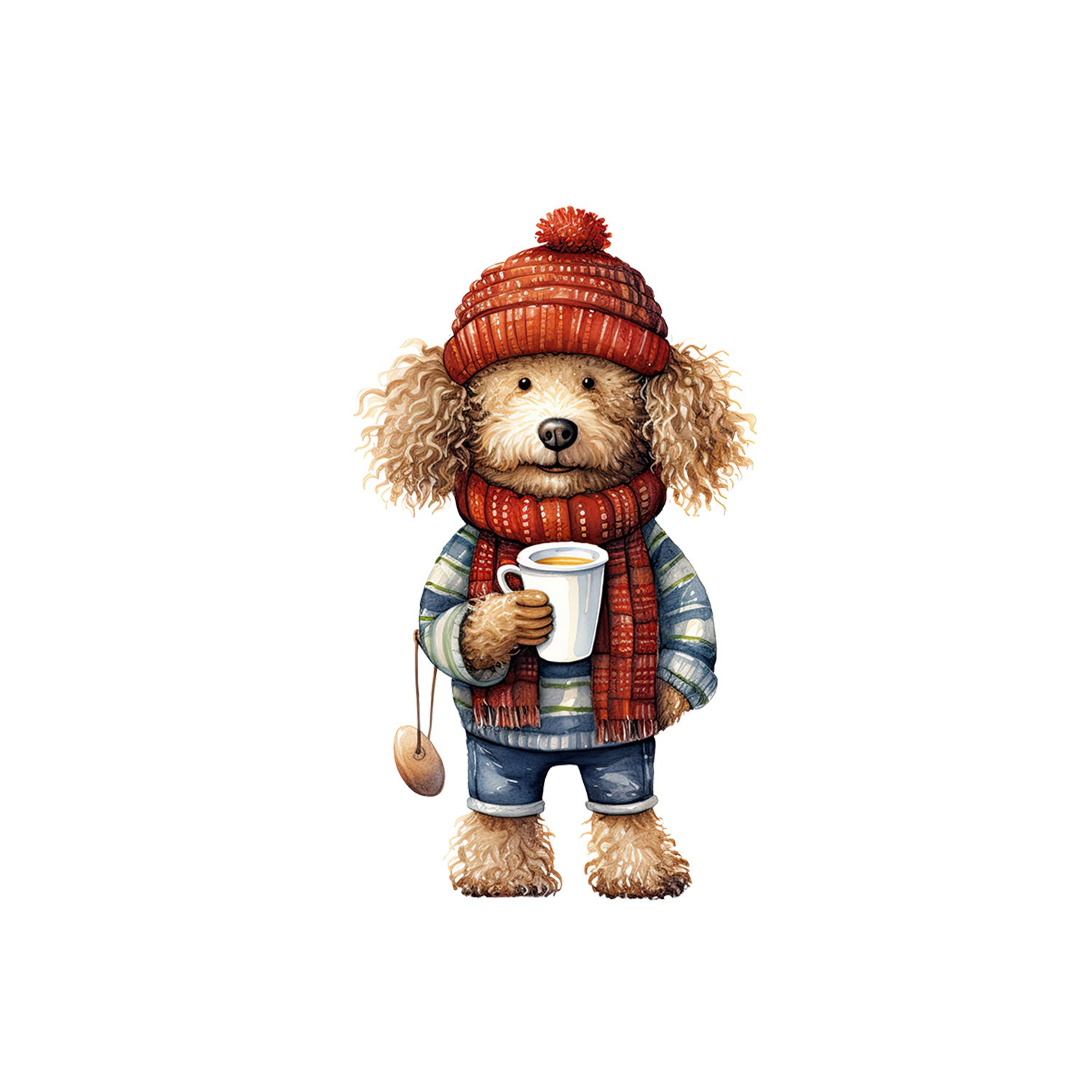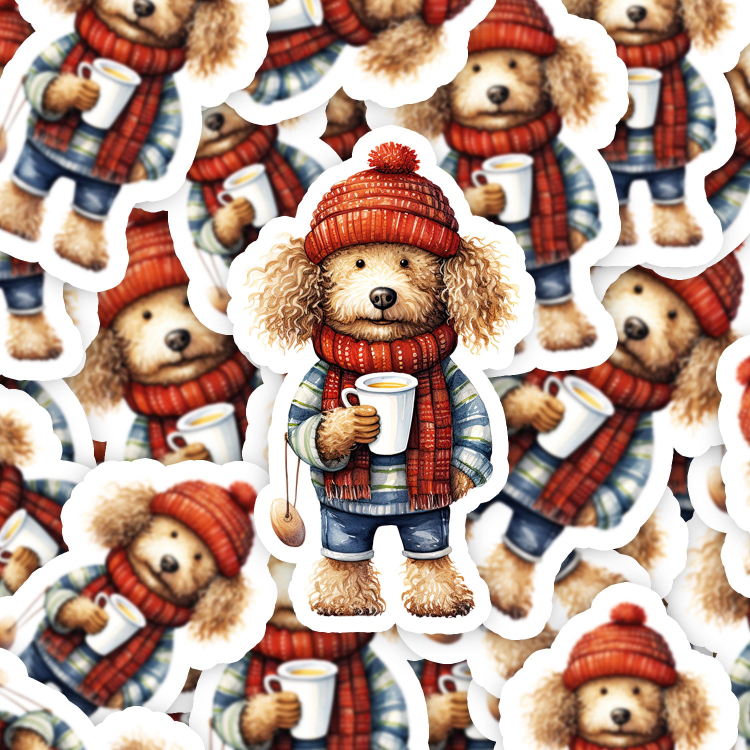 Set 5 bucati, Sticker decorativ, Poodle bea cafea, Rezistent la apa, NO11943, 6 cm, Multicolor