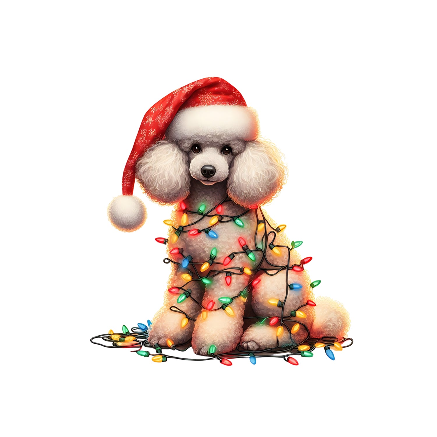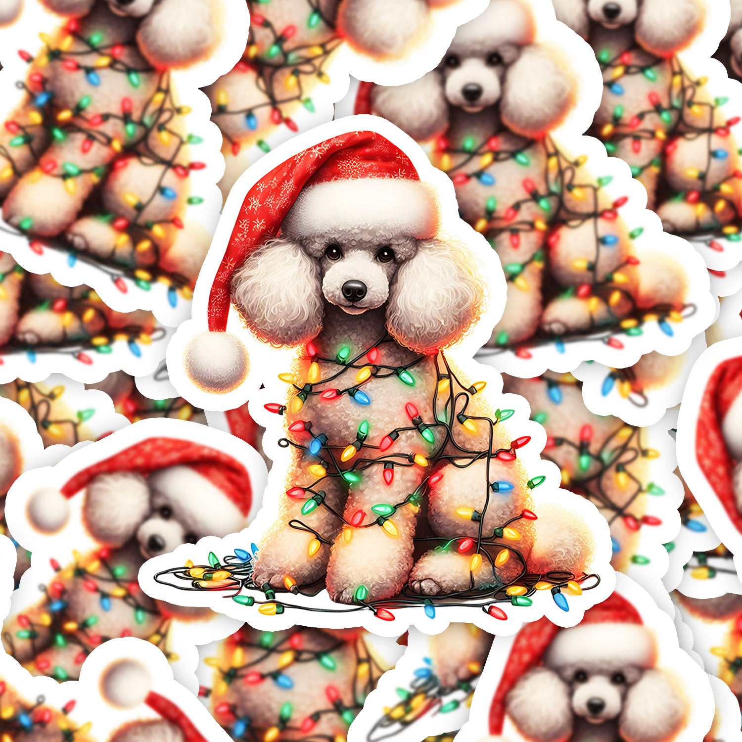 Set 5 bucati, Sticker decorativ, Poodle impodobit de craciun, Rezistent la apa, NO10263, 6 cm, Multicolor