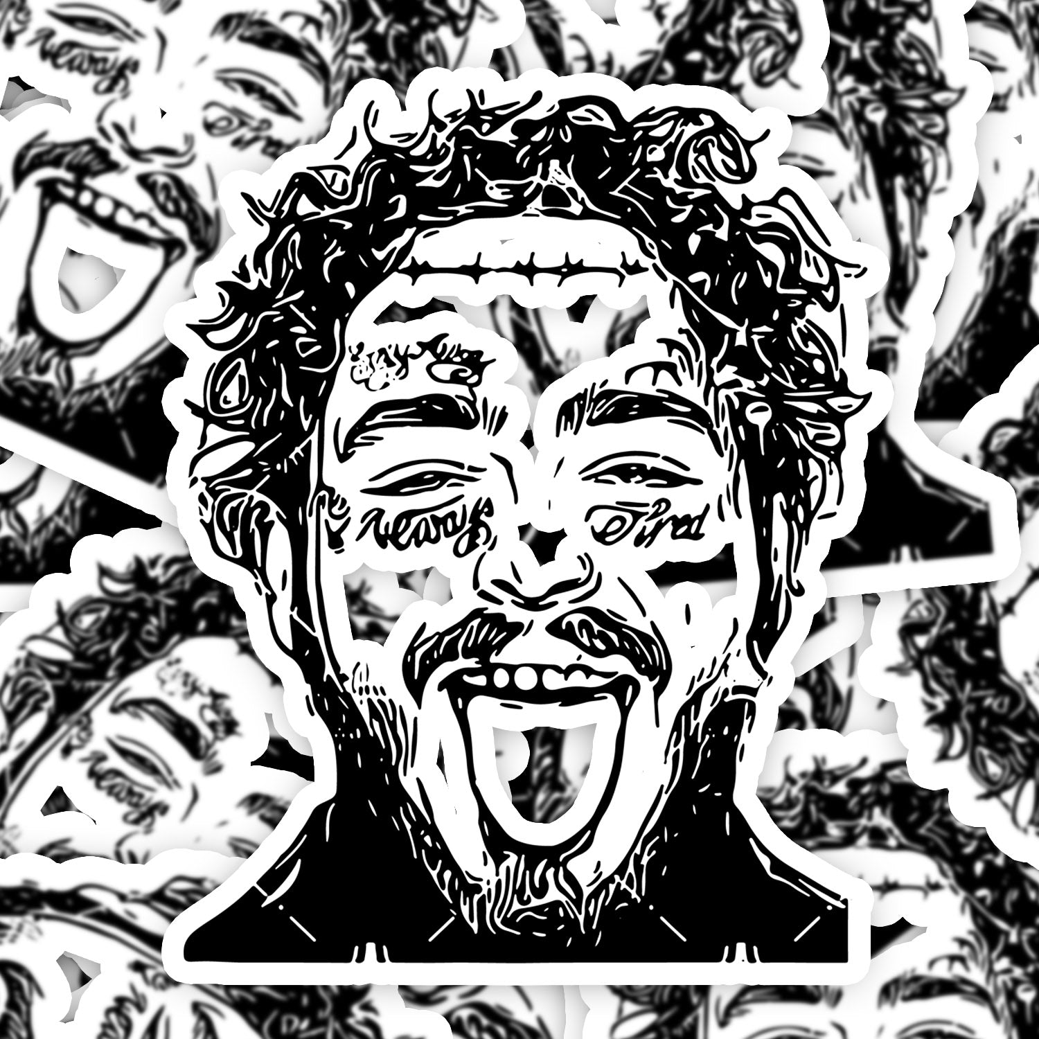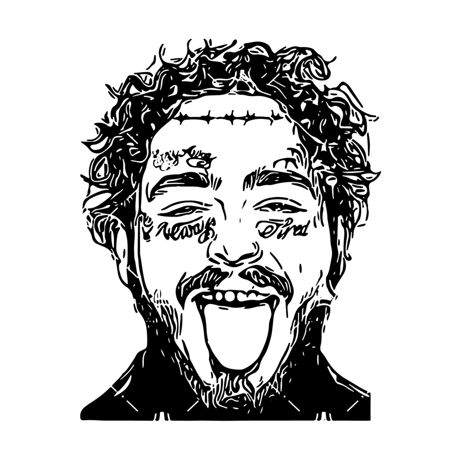 Set 5 bucati, Sticker decorativ, Post Malone cu limba scoasa, Rezistent la apa, NO11140, 6 cm, Multicolor