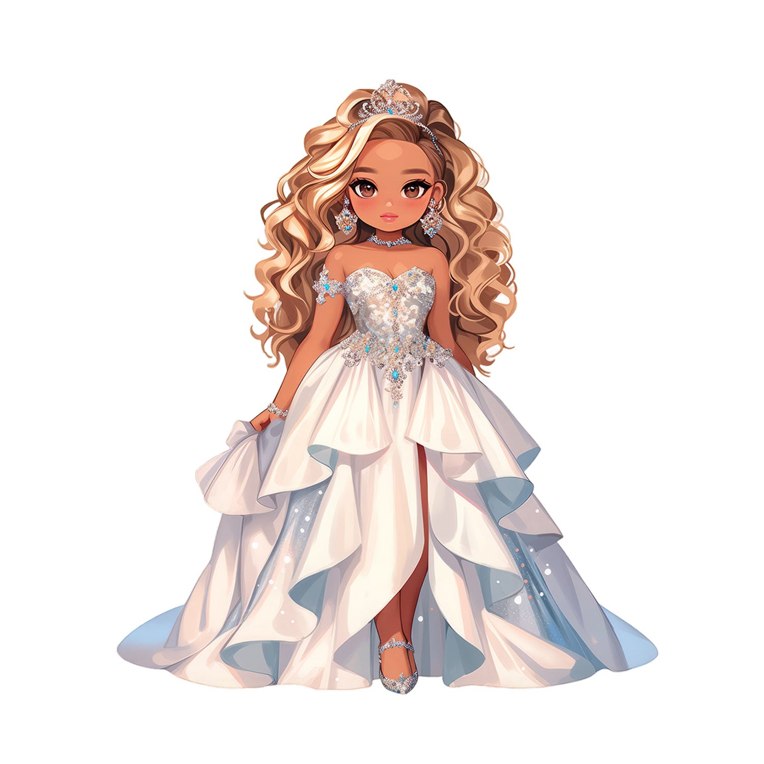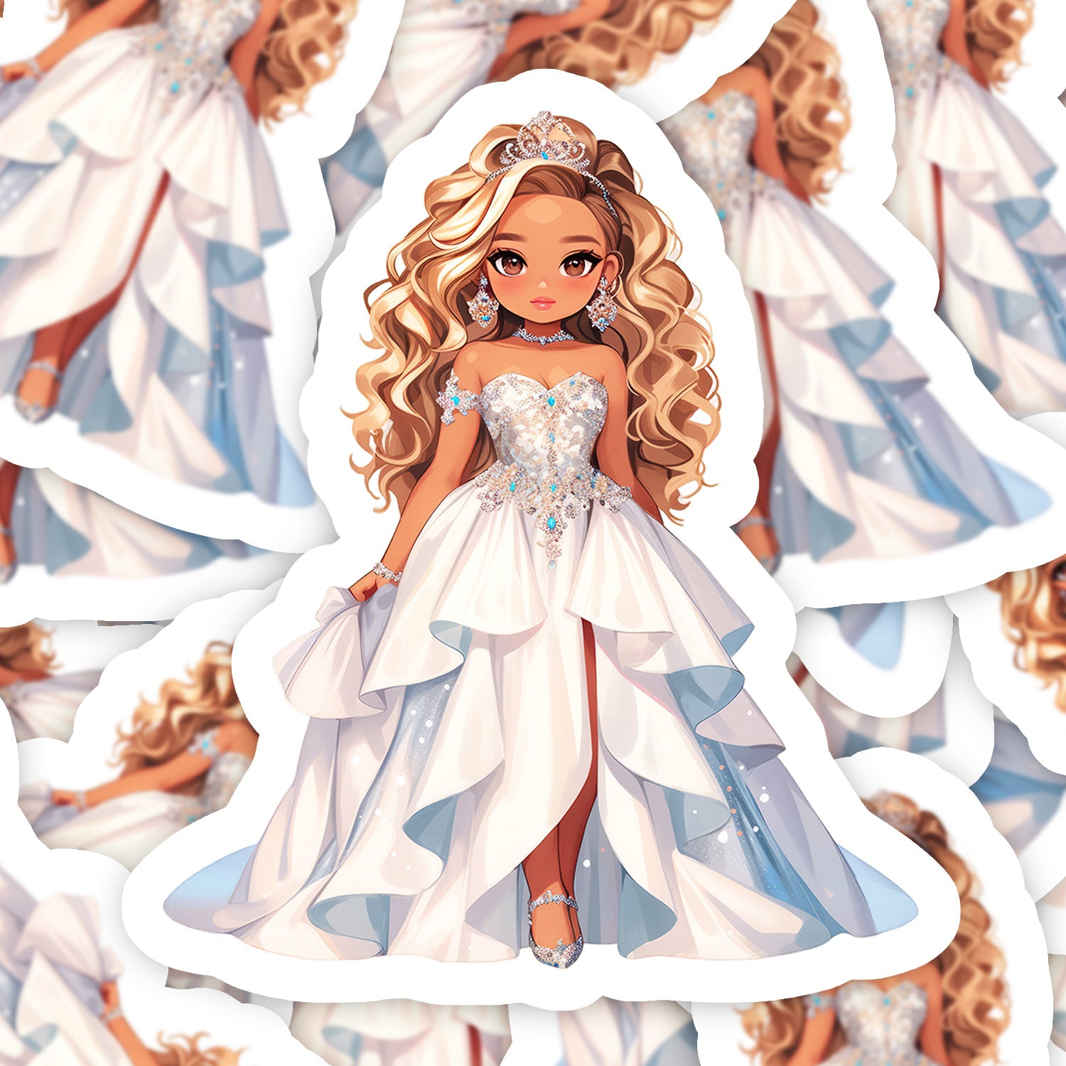 Set 5 bucati, Sticker decorativ, Printesa cu rochie alba, Rezistent la apa, NO12536, 6 cm, Multicolor