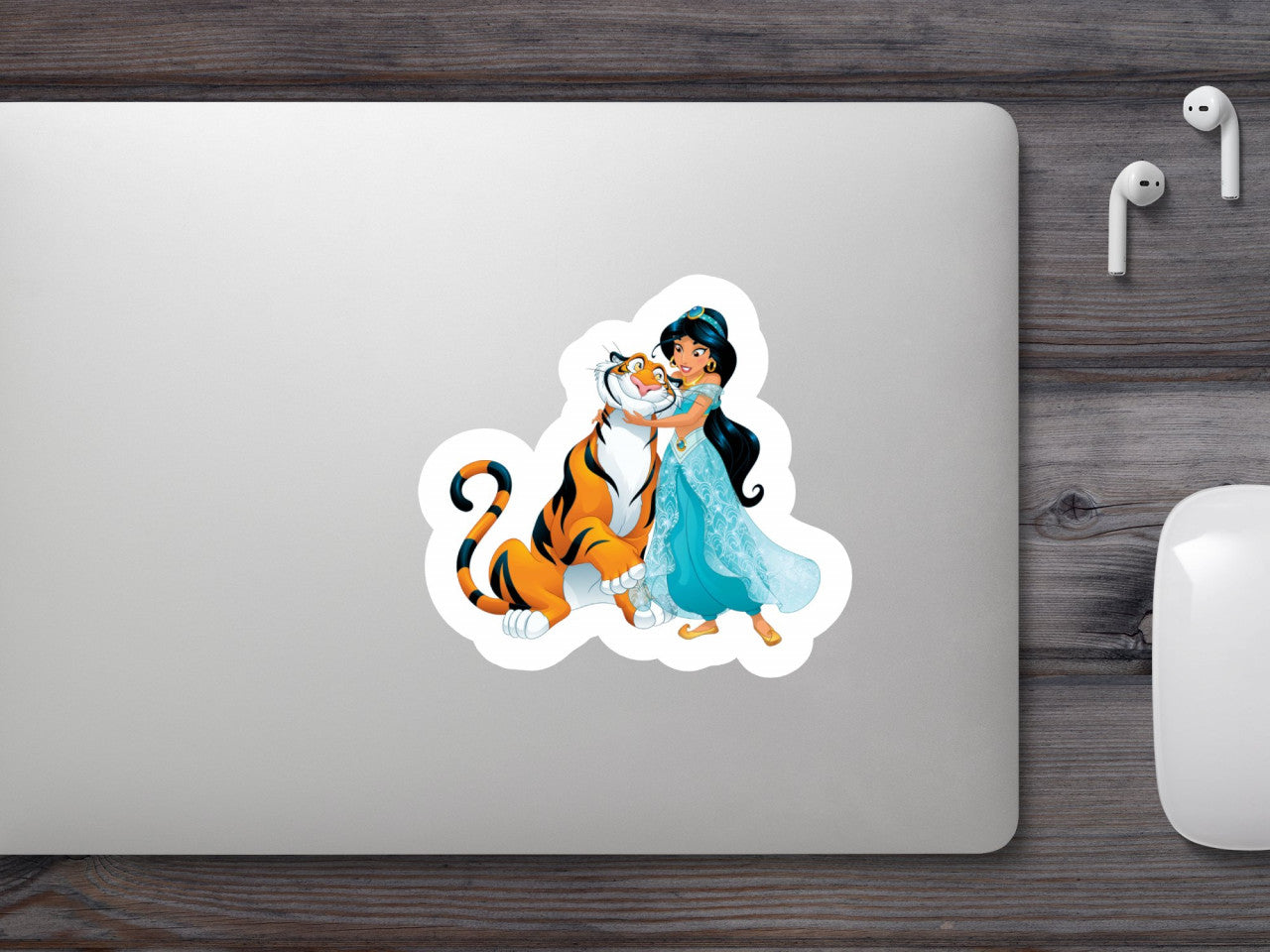 Set 5 bucati, Sticker decorativ, Printesa Jasmine si tigrul ei, Rezistent la apa, NO7719, 6 cm, Multicolor