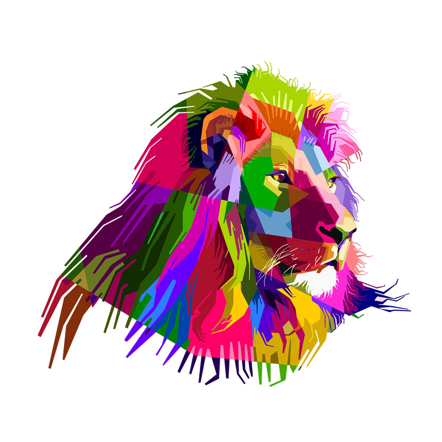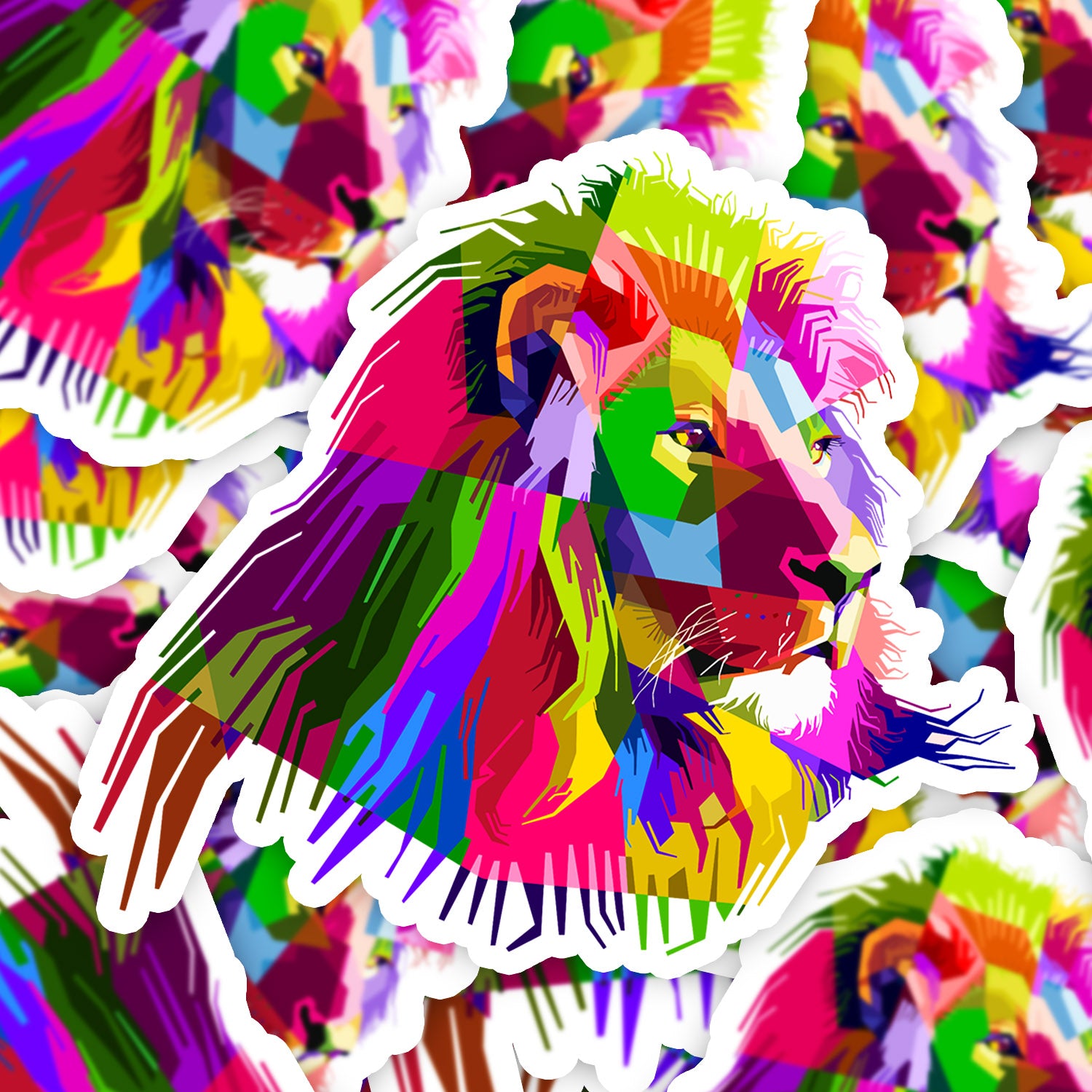 Set 5 bucati, Sticker decorativ, Prismatic Geometric Lion, Rezistent la apa, NO14033, 6 cm, Multicolor