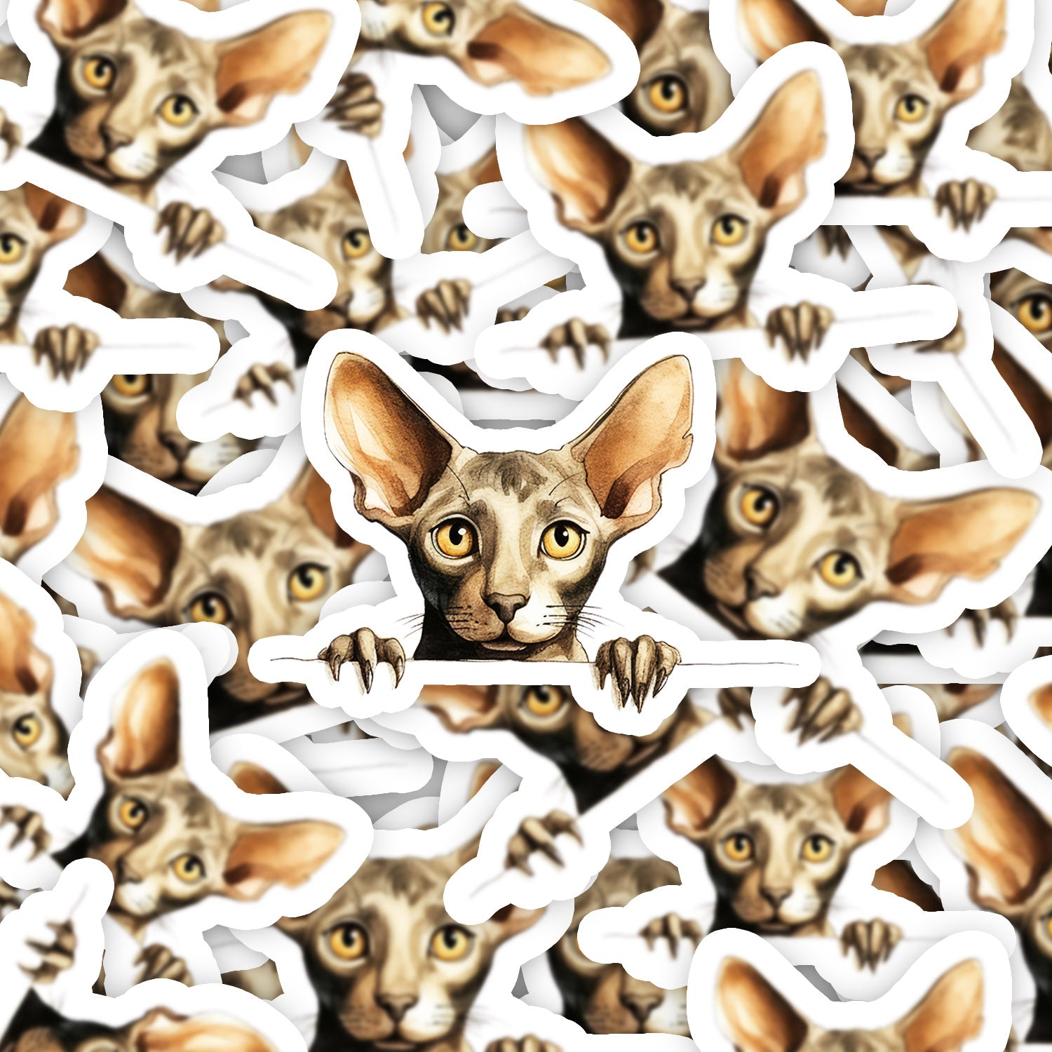 Set 5 bucati, Sticker decorativ, Psica sfinx trista, Rezistent la apa, NO10408, 6 cm, Multicolor