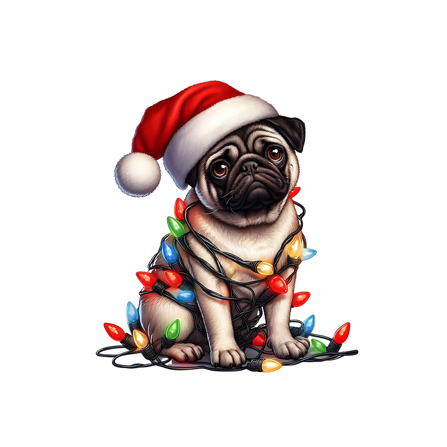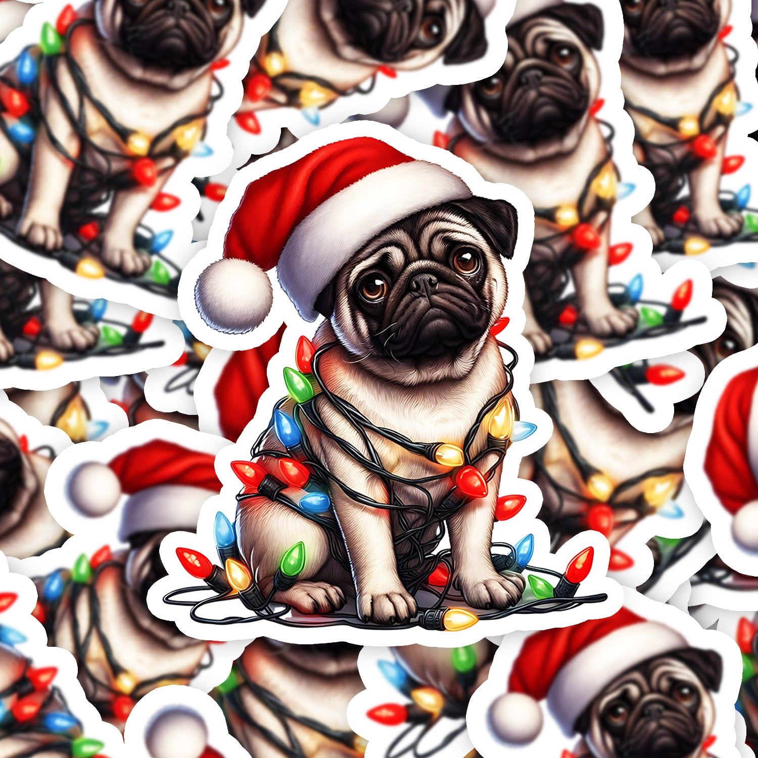 Set 5 bucati, Sticker decorativ, Pug Mops impodobit de craciun, Rezistent la apa, NO14936, 6 cm, Multicolor
