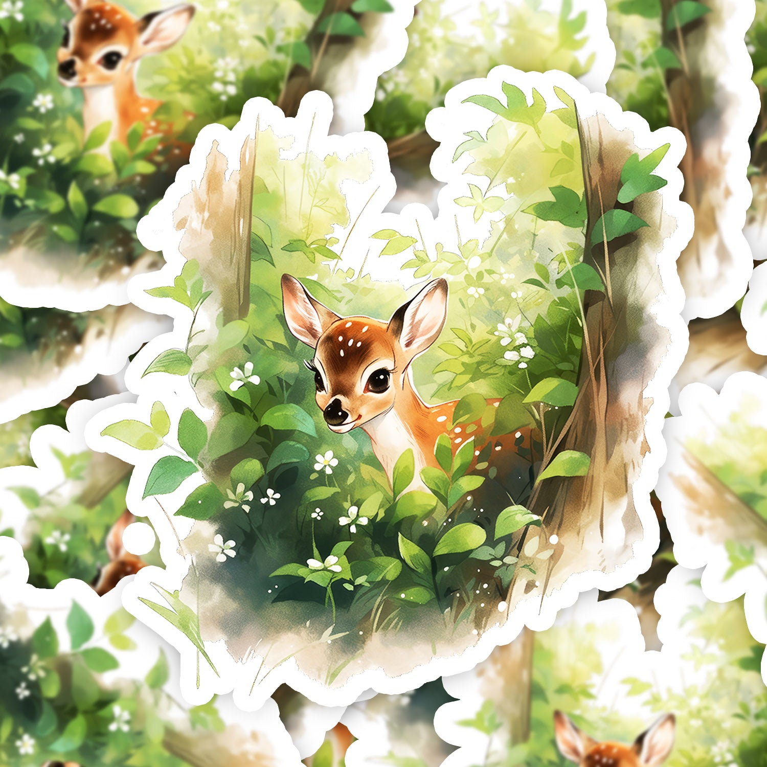 Set 5 bucati, Sticker decorativ, Pui de caprioara, Rezistent la apa, NO11069, 6 cm, Multicolor