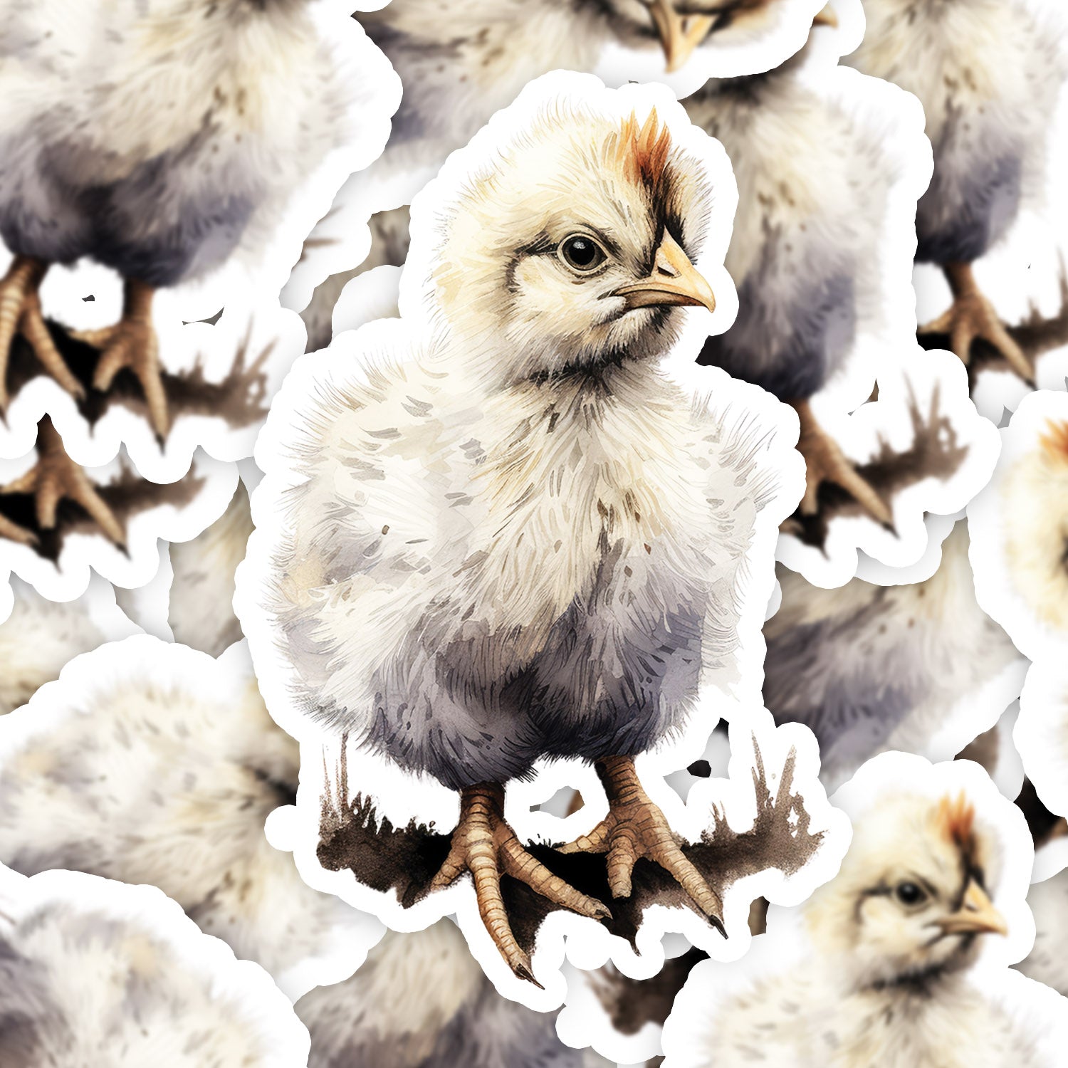 Set 5 bucati, Sticker decorativ, Pui de gaina cu mot galben, Rezistent la apa, NO12253, 6 cm, Multicolor