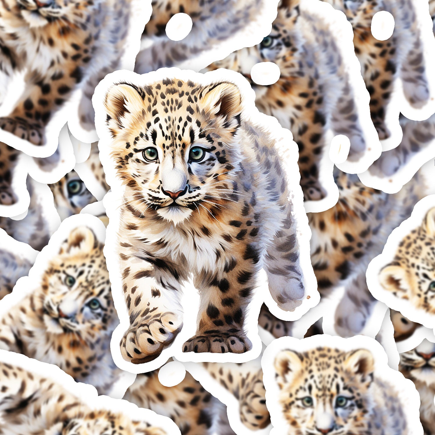 Set 5 bucati, Sticker decorativ, Pui de leopard alergand, Rezistent la apa, NO14646, 6 cm, Multicolor