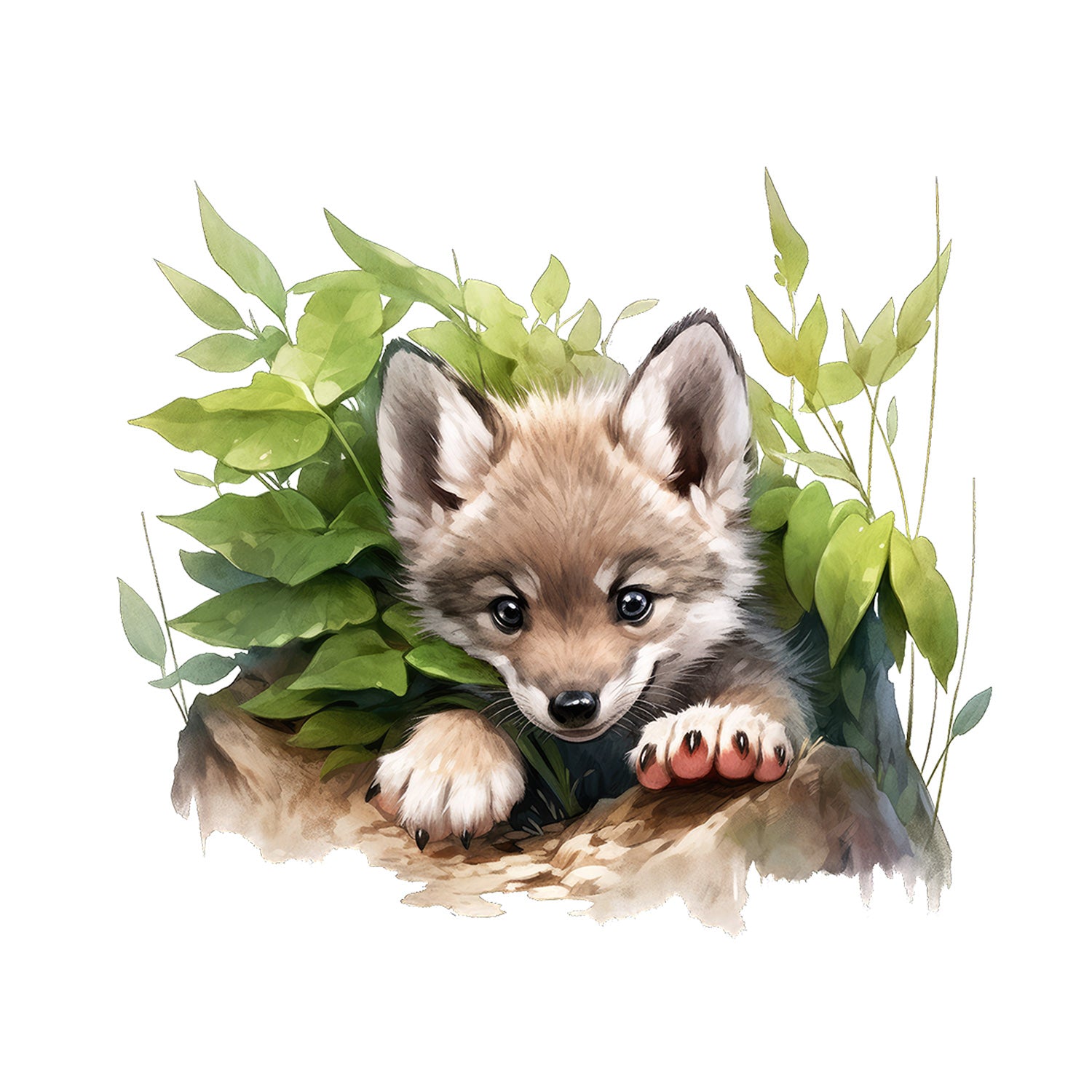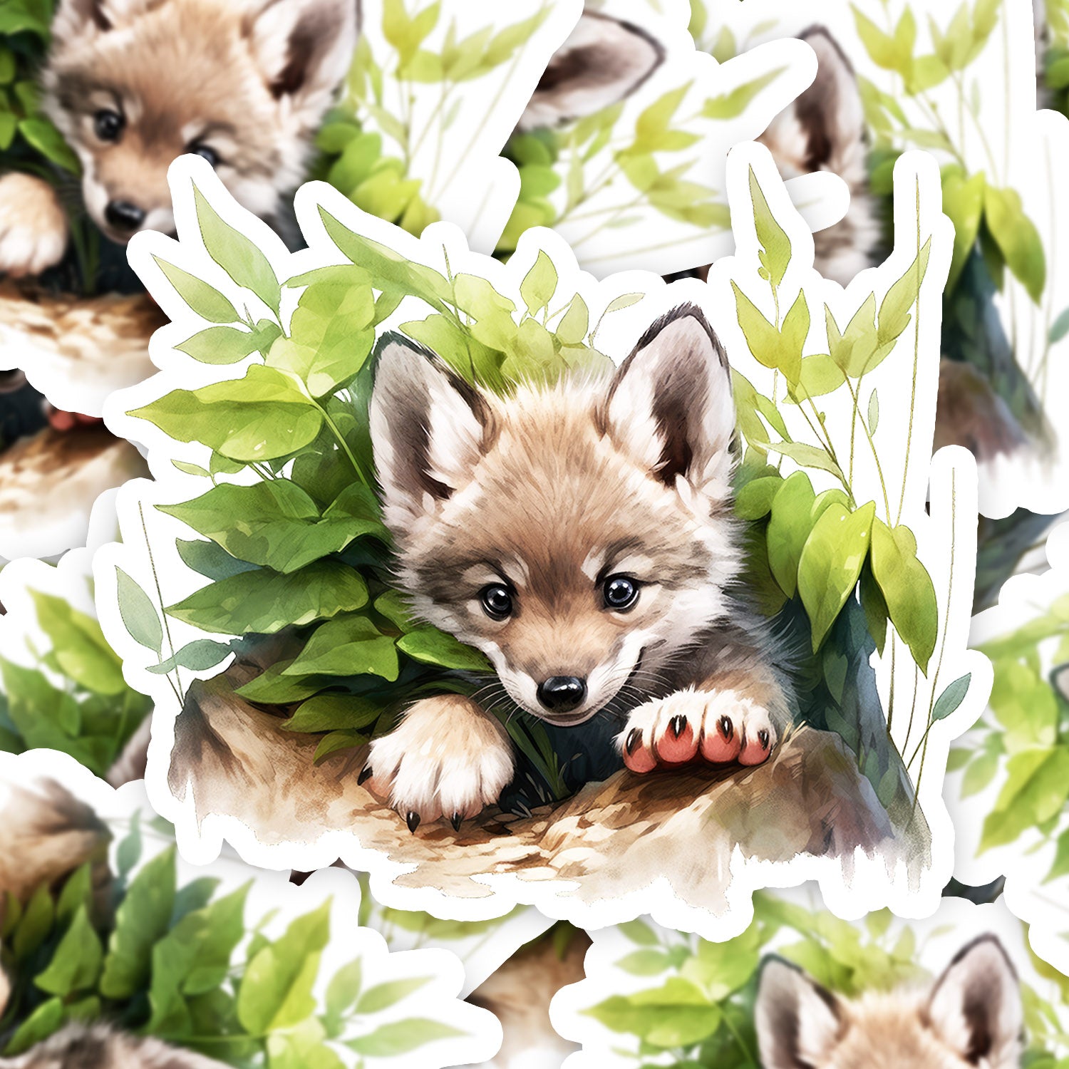 Set 5 bucati, Sticker decorativ, Pui de lup, Rezistent la apa, NO11714, 6 cm, Multicolor