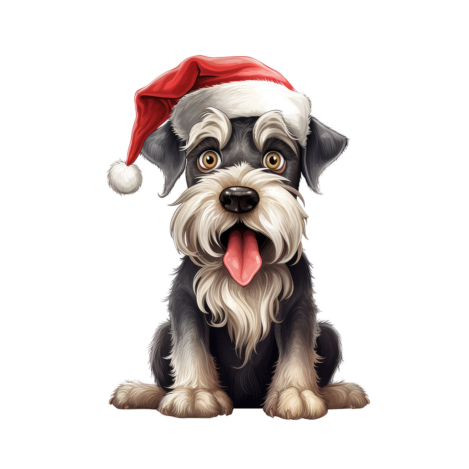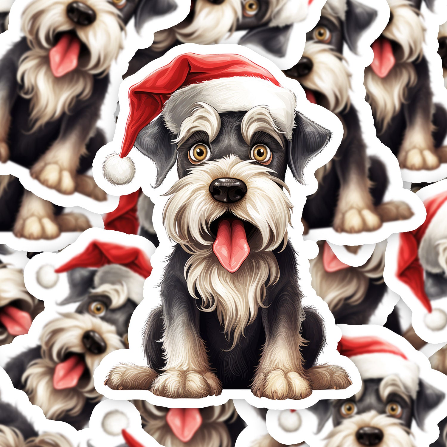 Set 5 bucati, Sticker decorativ, Pui de Schnauzer cu caciula de craciun, Rezistent la apa, NO10915, 6 cm, Multicolor