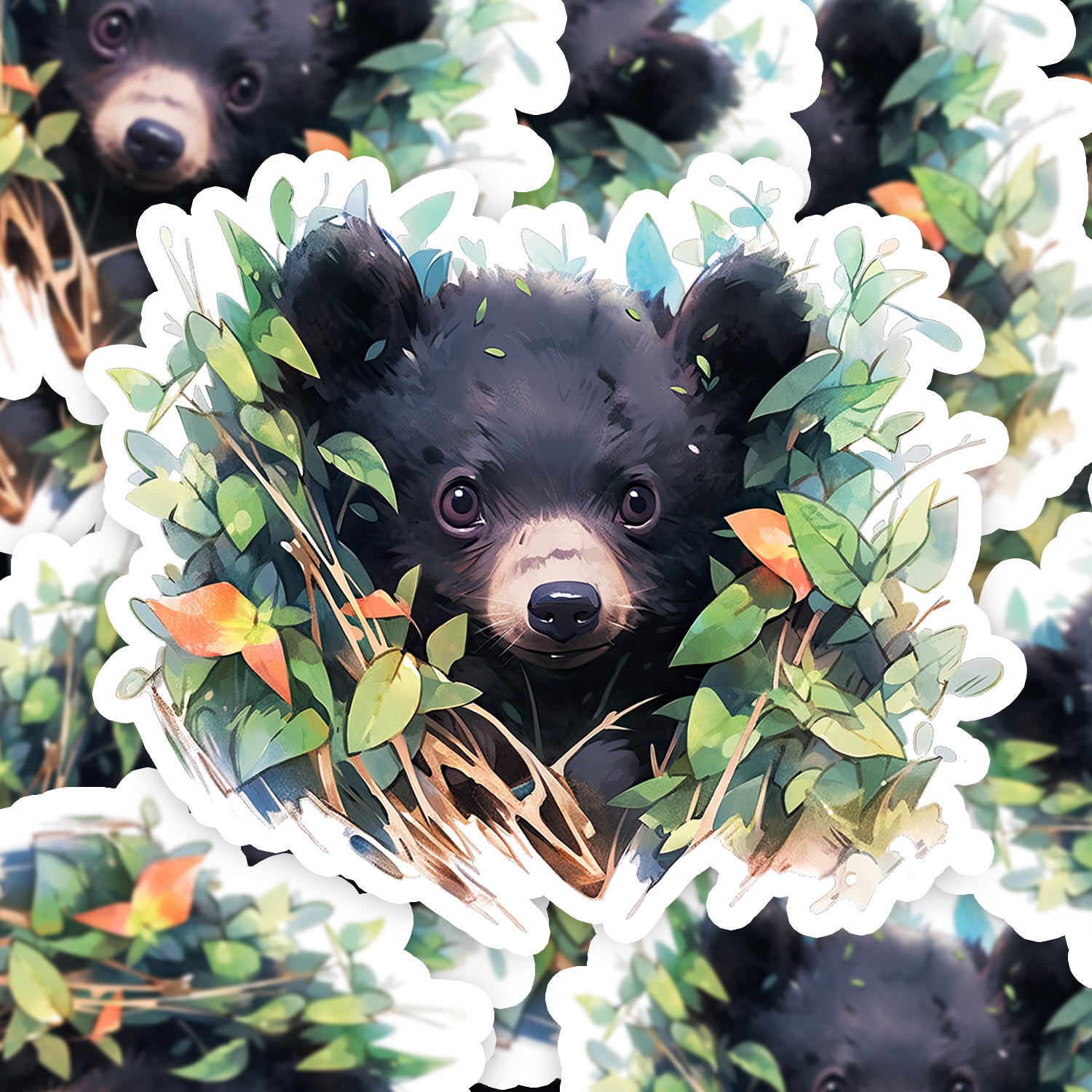 Set 5 bucati, Sticker decorativ, Pui de urs, Rezistent la apa, NO12467, 6 cm, Multicolor