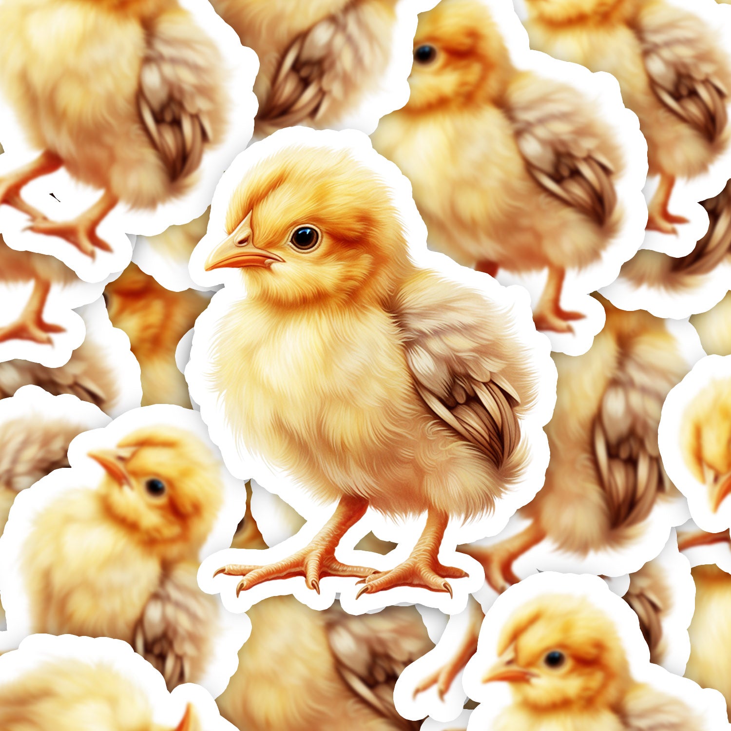 Set 5 bucati, Sticker decorativ, Pui galben, Rezistent la apa, NO11913, 6 cm, Multicolor