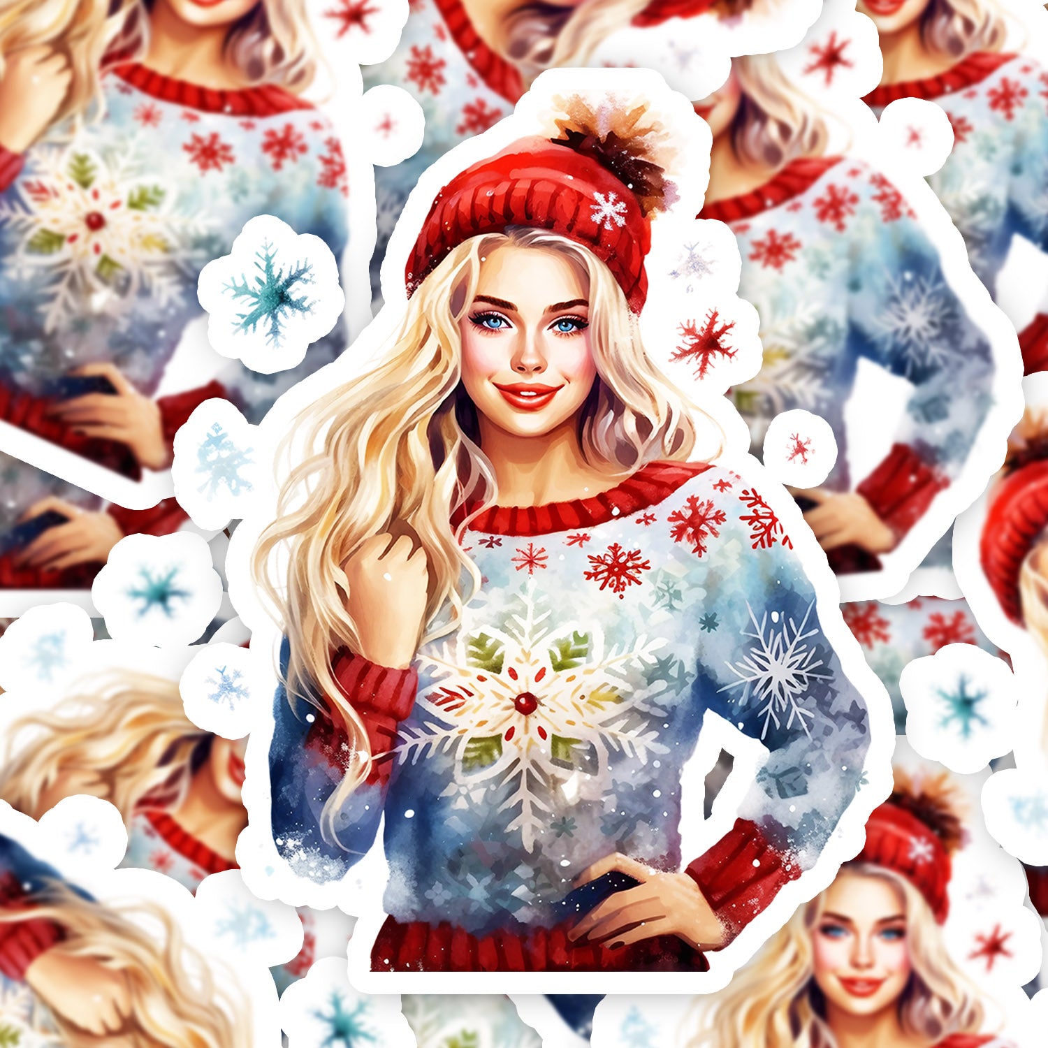 Set 5 bucati, Sticker decorativ, Pulovar de iarna Antonia, Rezistent la apa, NO10568, 6 cm, Multicolor