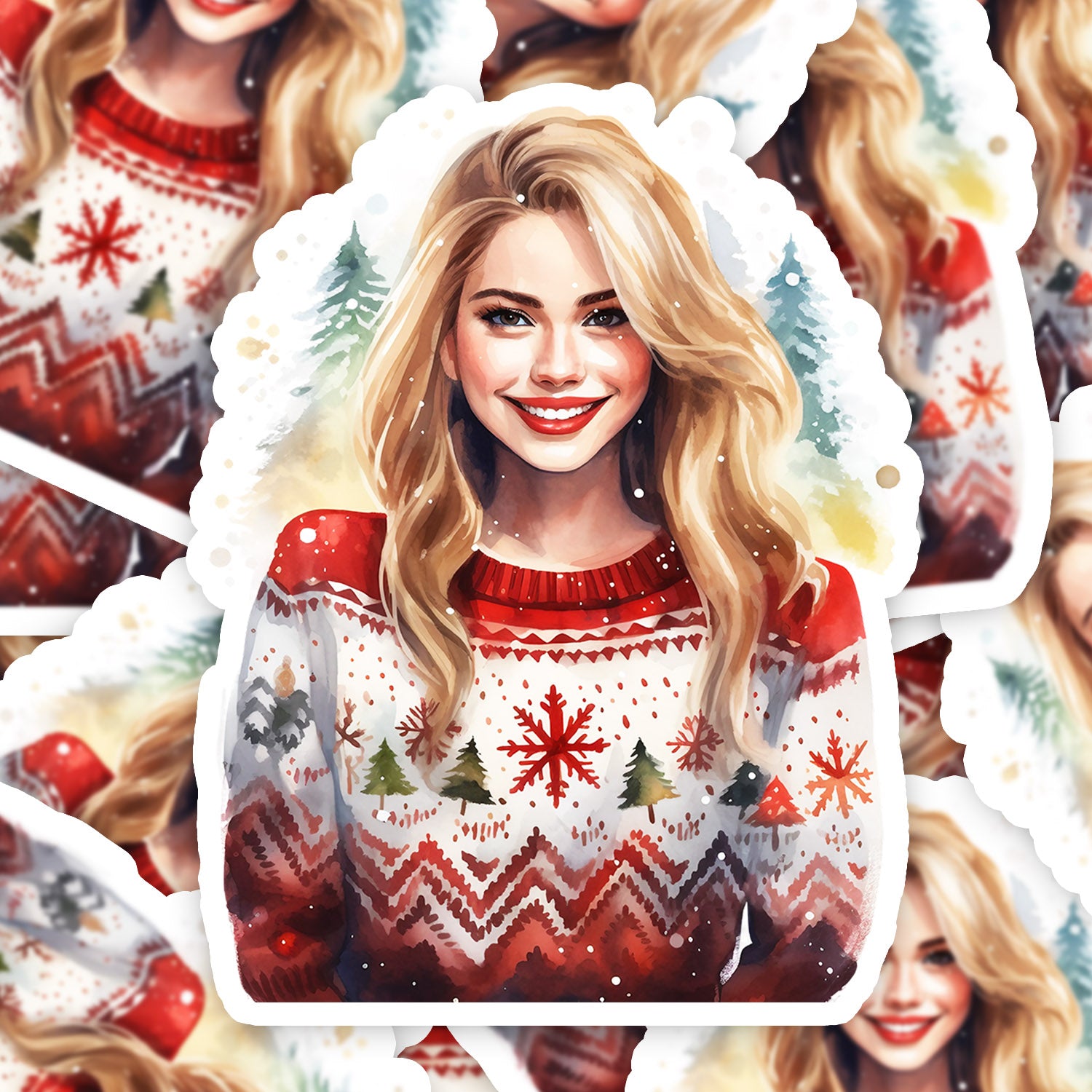 Set 5 bucati, Sticker decorativ, Pulovar de iarna Codruta, Rezistent la apa, NO15921, 6 cm, Multicolor