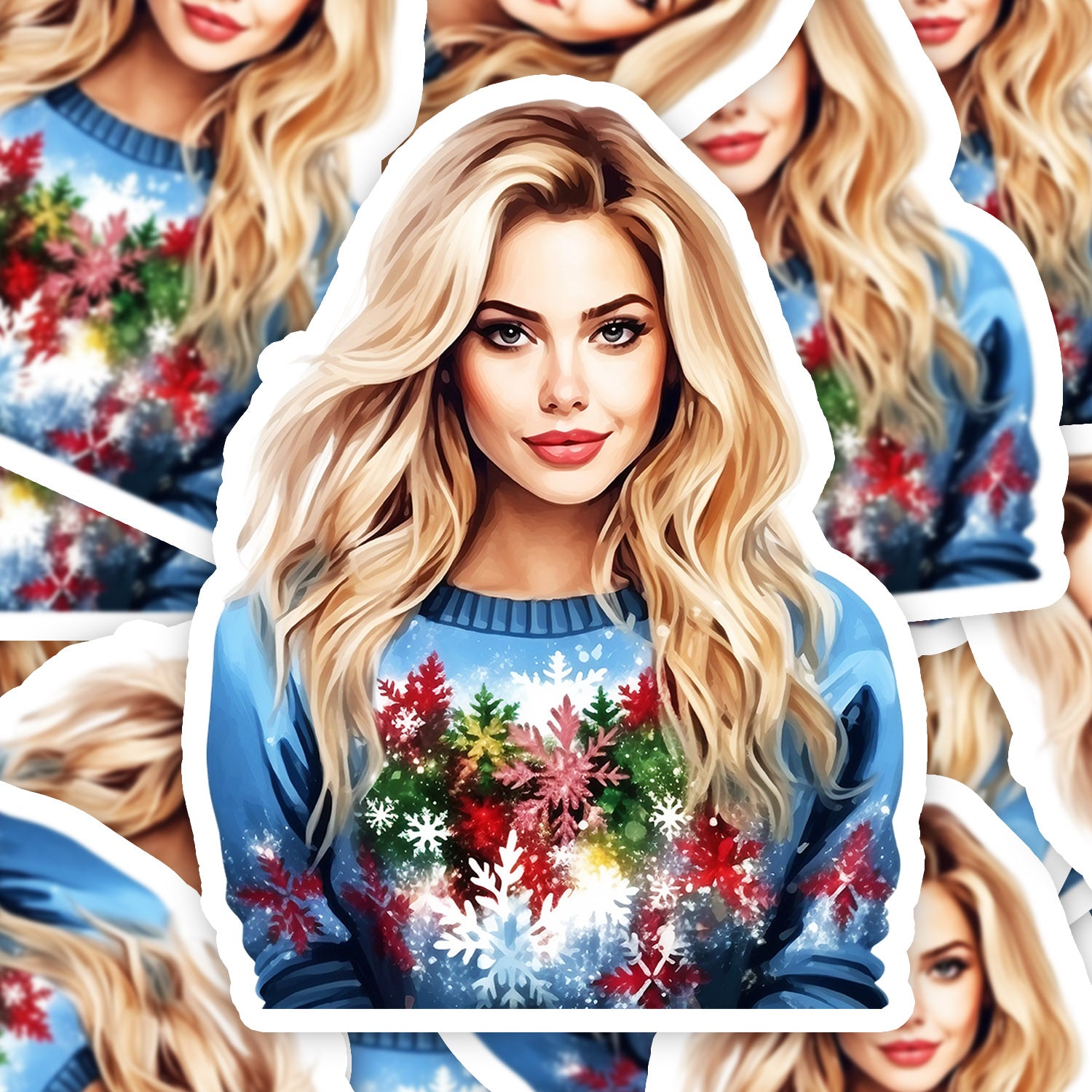 Set 5 bucati, Sticker decorativ, Pulovar de iarna Diana, Rezistent la apa, NO11646, 6 cm, Multicolor