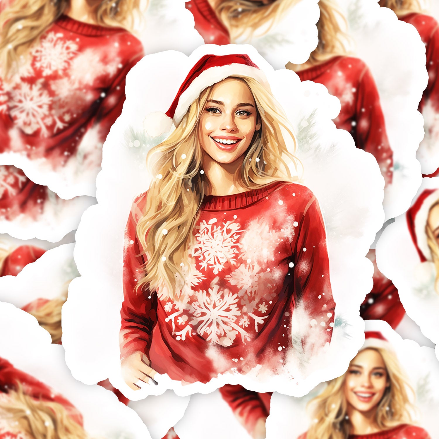 Set 5 bucati, Sticker decorativ, Pulovar de iarna Eliza, Rezistent la apa, NO13826, 6 cm, Multicolor