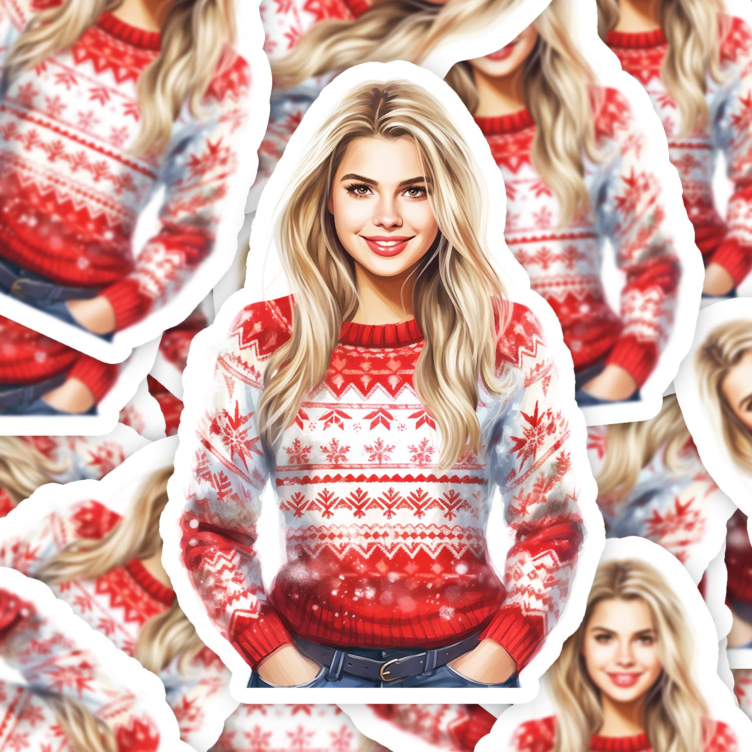 Set 5 bucati, Sticker decorativ, Pulovar de iarna Emilia, Rezistent la apa, NO15701, 6 cm, Multicolor