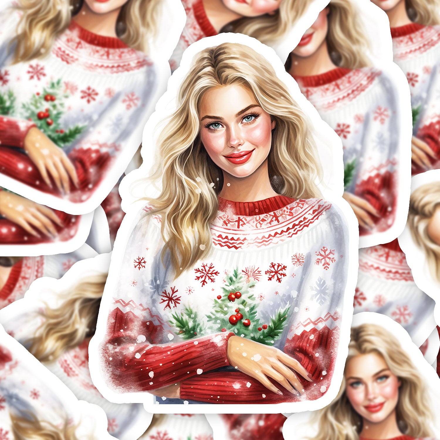 Set 5 bucati, Sticker decorativ, Pulovar de iarna Geanina, Rezistent la apa, NO13901, 6 cm, Multicolor