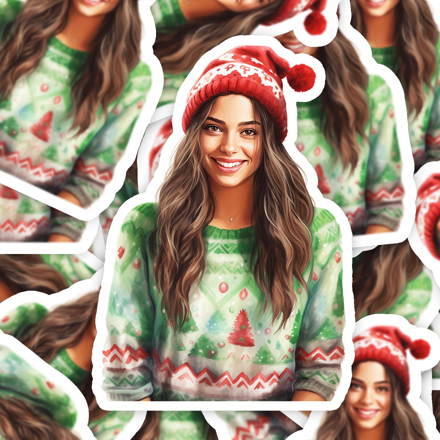 Set 5 bucati, Sticker decorativ, Pulovar de iarna Ilinca, Rezistent la apa, NO16100, 6 cm, Multicolor