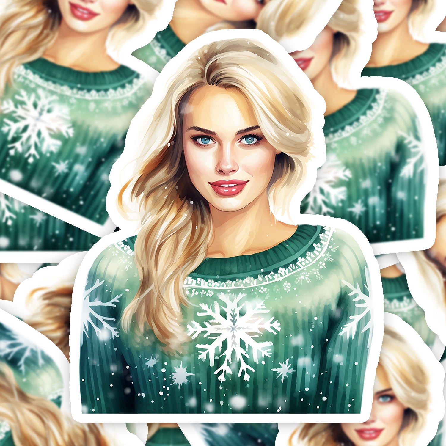 Set 5 bucati, Sticker decorativ, Pulovar de iarna Izabela, Rezistent la apa, NO15010, 6 cm, Multicolor