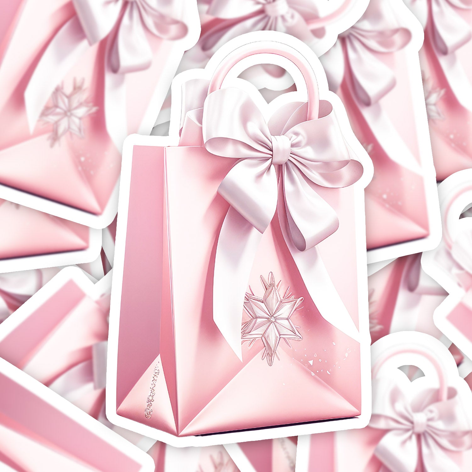 Set 5 bucati, Sticker decorativ, Punga de cadouri roz cu funda, Rezistent la apa, NO14542, 6 cm, Multicolor